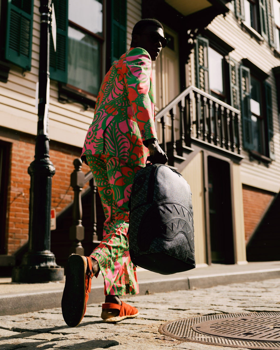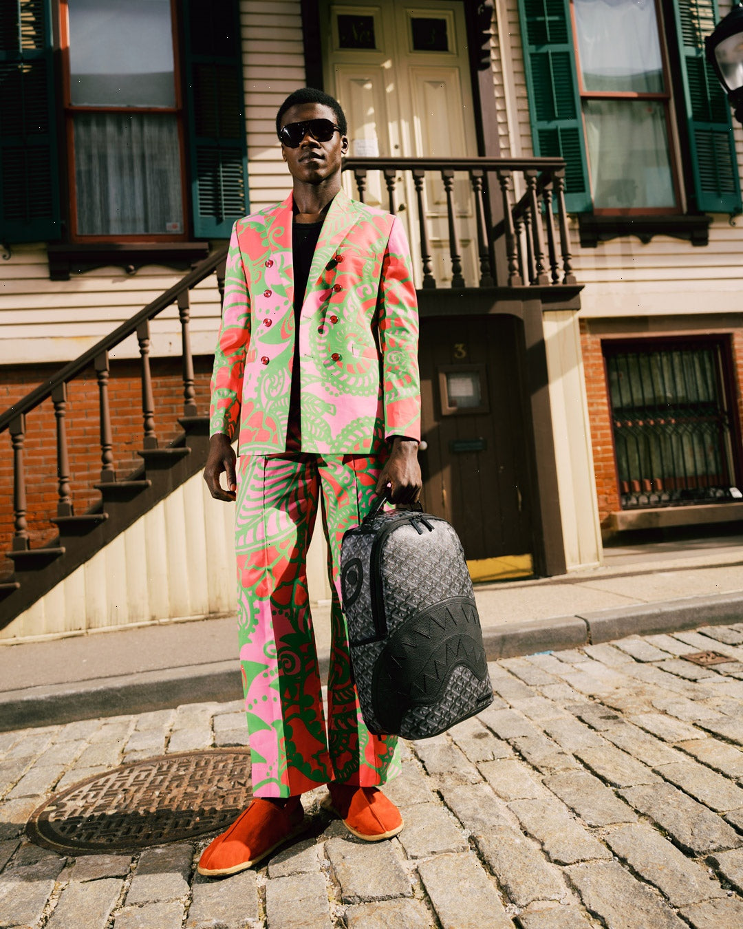 Dimensions: 18" x 6" x 11.5" ? Front zipper pocket ? Side pockets ? Zippered Stash pocket ? Separate velour sunglass compartment ? Ergonomic mesh back padding ? Adjustable Straps for custom sizing ? Gold zippers with metal hardware ? Metal "Sprayground Authentic" badge ? Slide through back sleeve connects to carry-on luggage to free your hands