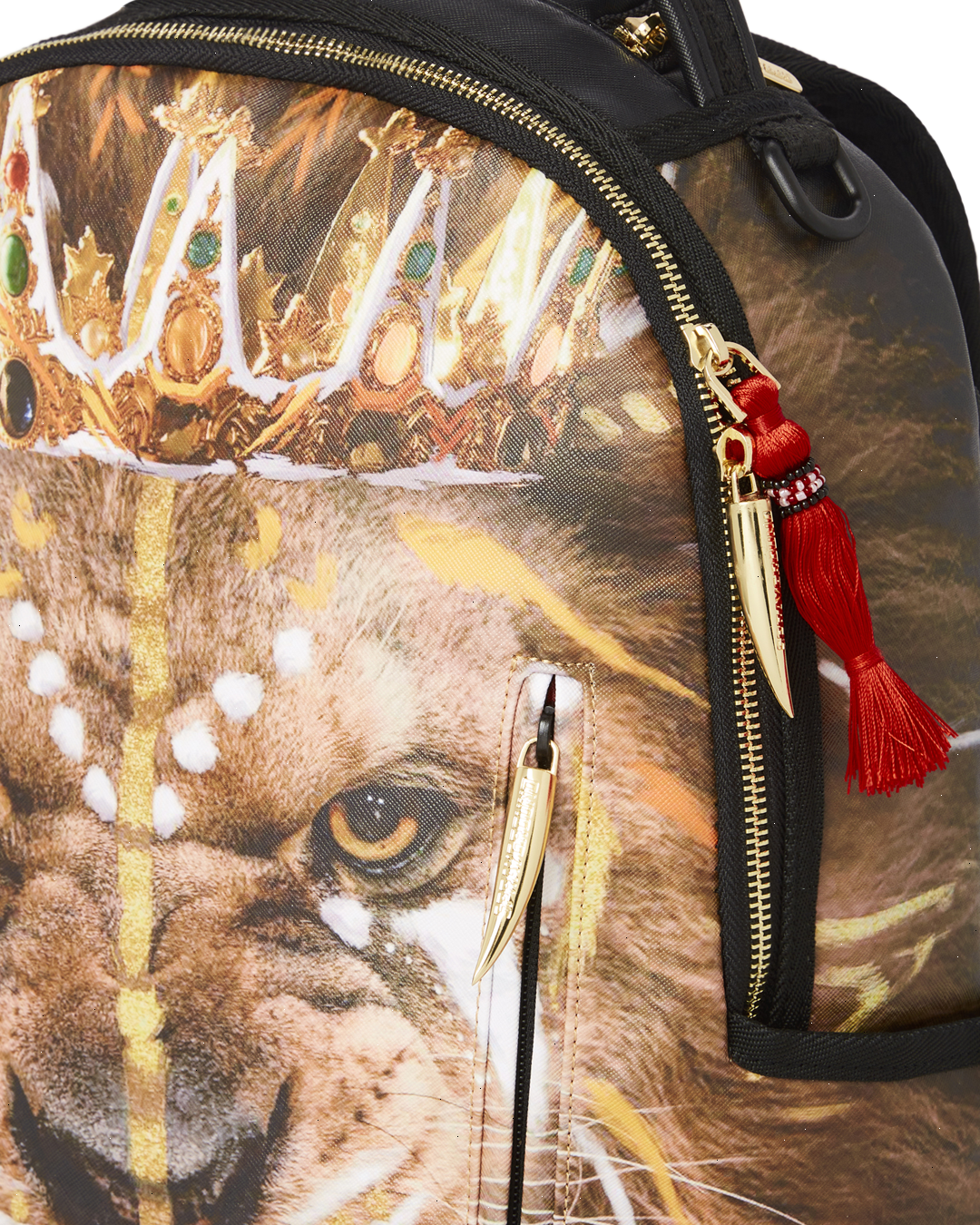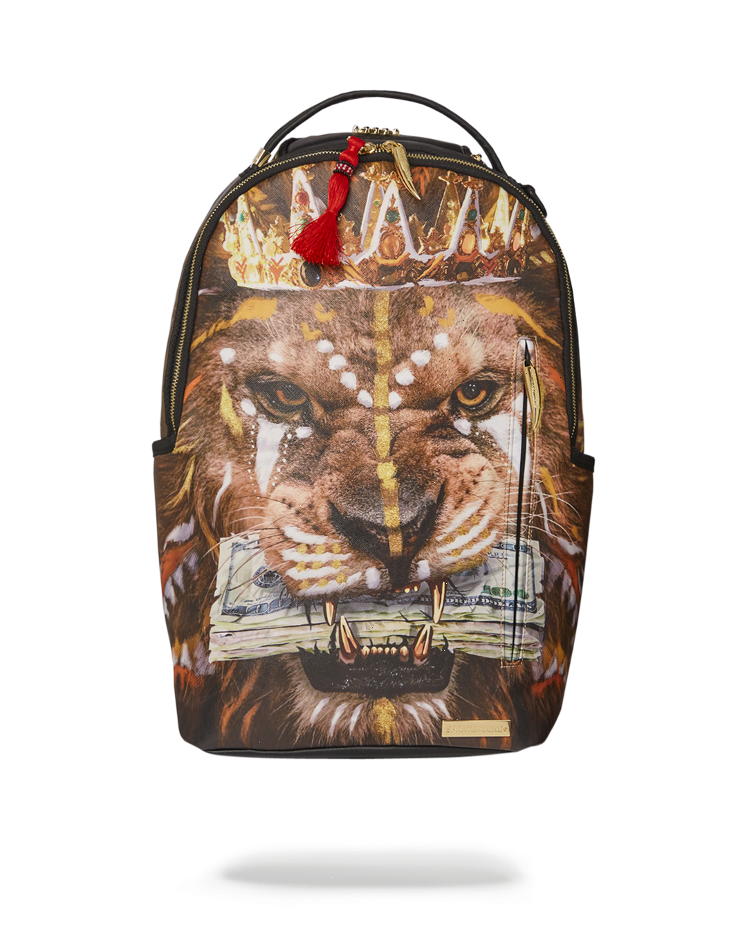 Dimensions: 18" x 6" x 11.5" ? Front zipper pocket ? Side pockets ? Zippered Stash pocket ? Separate velour sunglass compartment ? Ergonomic mesh back padding ? Adjustable Straps for custom sizing ? Red zippers with metal hardware ? Metal "Sprayground Authentic" badge ? Slide through back sleeve connects to carry-on luggage to free your hands