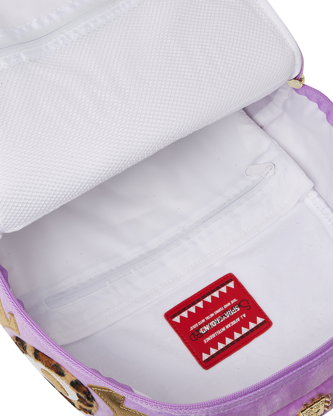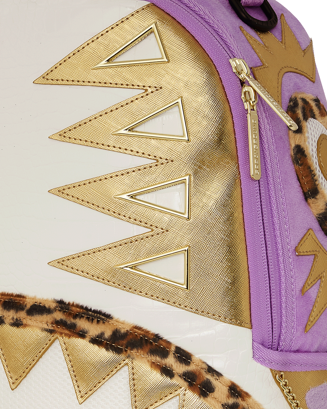 Dimensions: 18" x 6" x 11.5" ? Front zipper pocket ? Side pockets ? Zippered Stash pocket ? Separate velour sunglass compartment ? Ergonomic mesh back padding ? Adjustable Straps for custom sizing ? Gold zippers with metal hardware ? Metal "Sprayground Authentic" badge ? Slide through back sleeve connects to carry-on luggage to free your hands