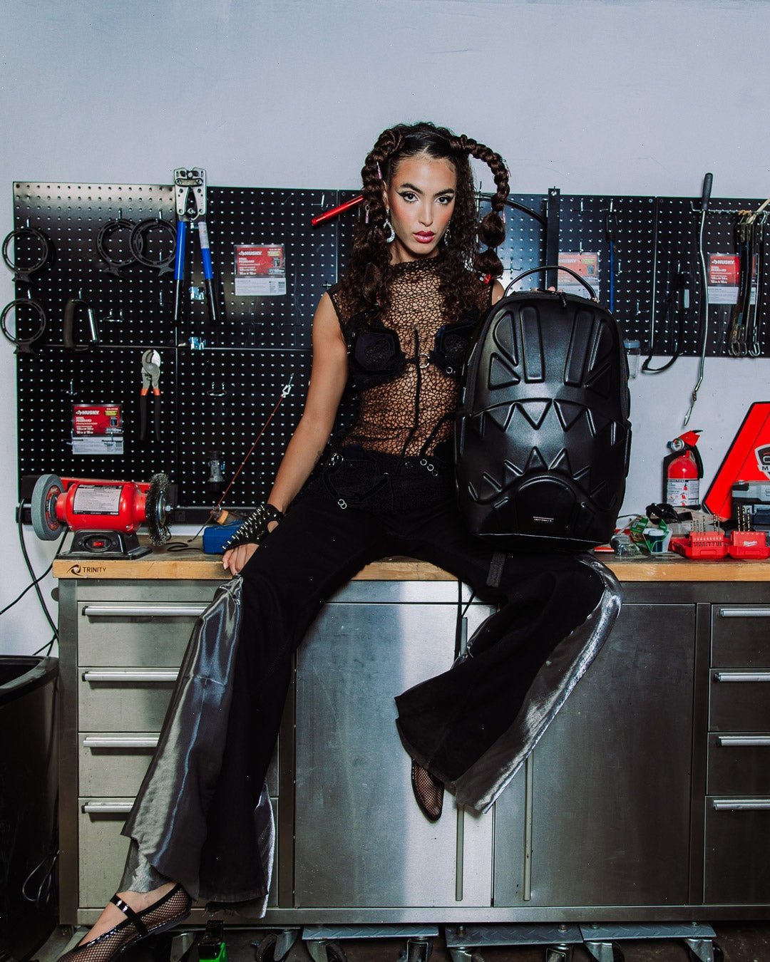 Dimensions: 18" x 6" x 11.5" ? Front zipper pocket ? Side pockets ? Zippered Stash pocket ? Separate velour sunglass compartment ? Ergonomic mesh back padding ? Adjustable Straps for custom sizing ? Gold zippers with metal hardware ? Metal "Sprayground Authentic" badge ? Slide through back sleeve connects to carry-on luggage to free your hands