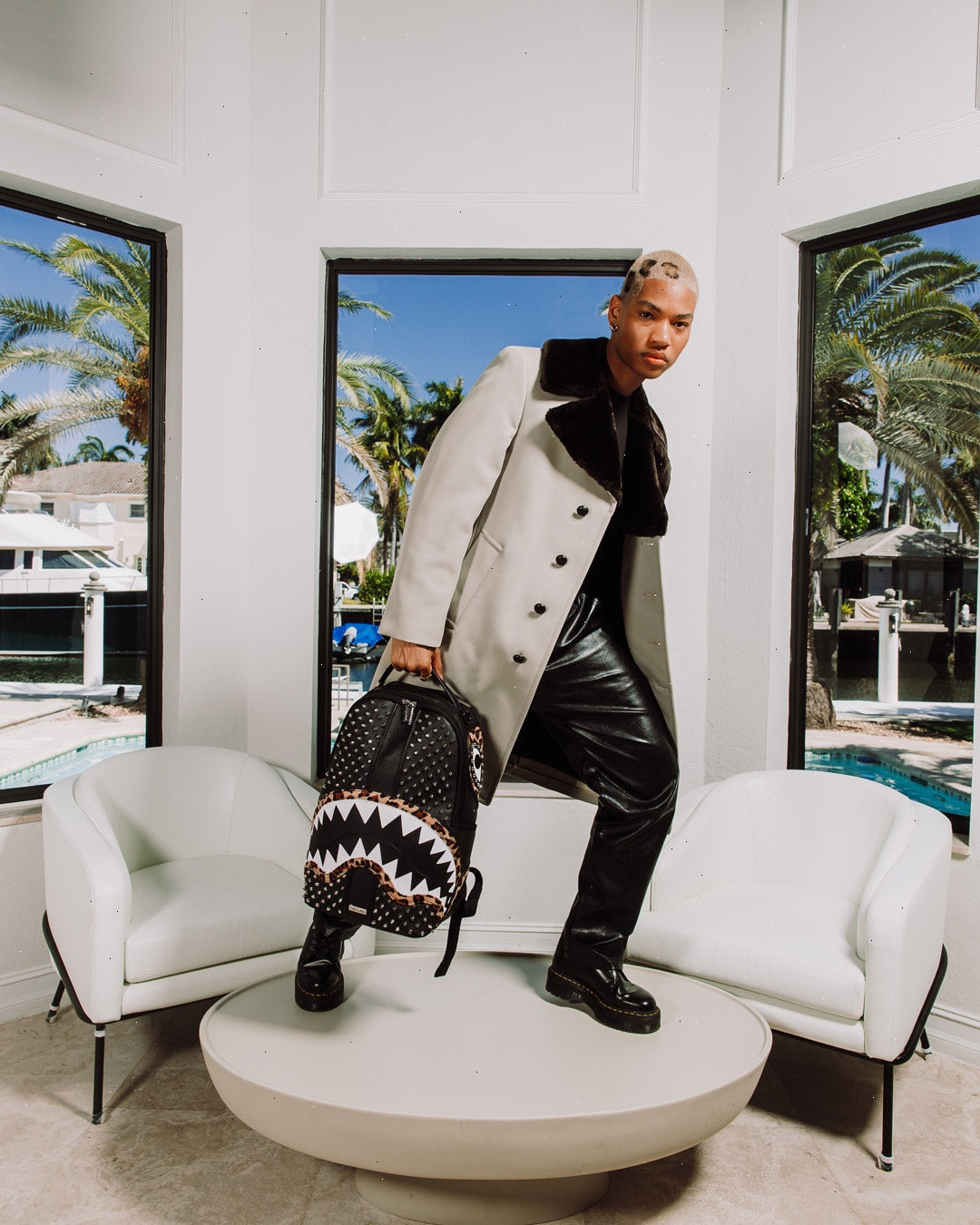 Dimensions: 18" x 6" x 11.5" ? Front zipper pocket ? Side pockets ? Zippered Stash pocket ? Separate velour sunglass compartment ? Ergonomic mesh back padding ? Adjustable Straps for custom sizing ? Gold zippers with metal hardware ? Metal "Sprayground Authentic" badge ? Slide through back sleeve connects to carry-on luggage to free your hands