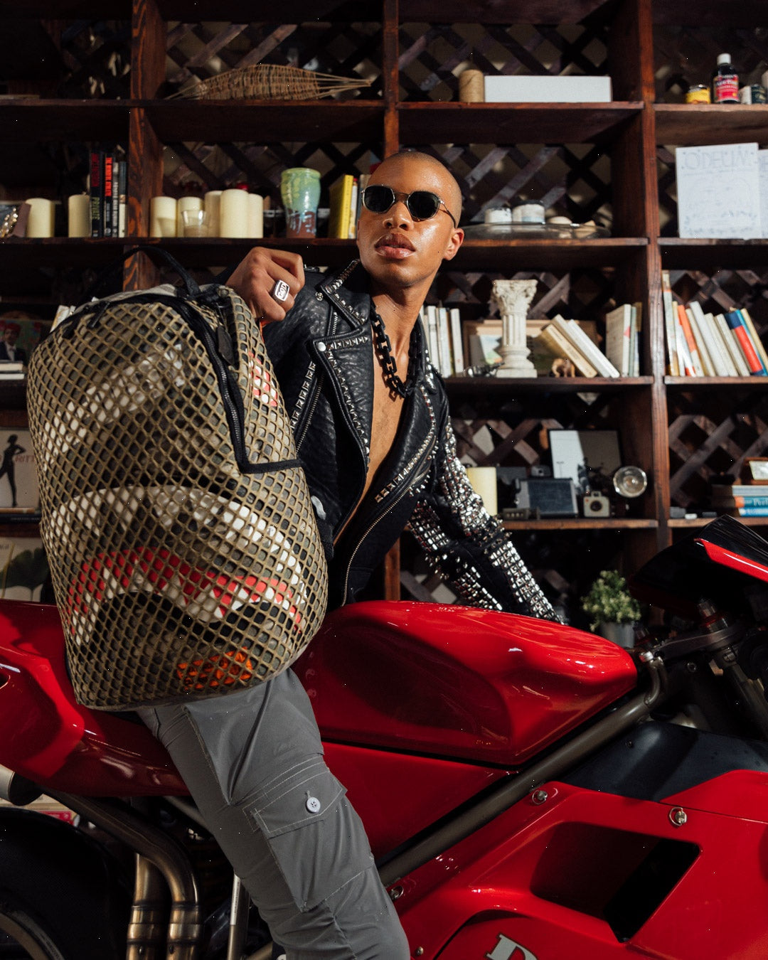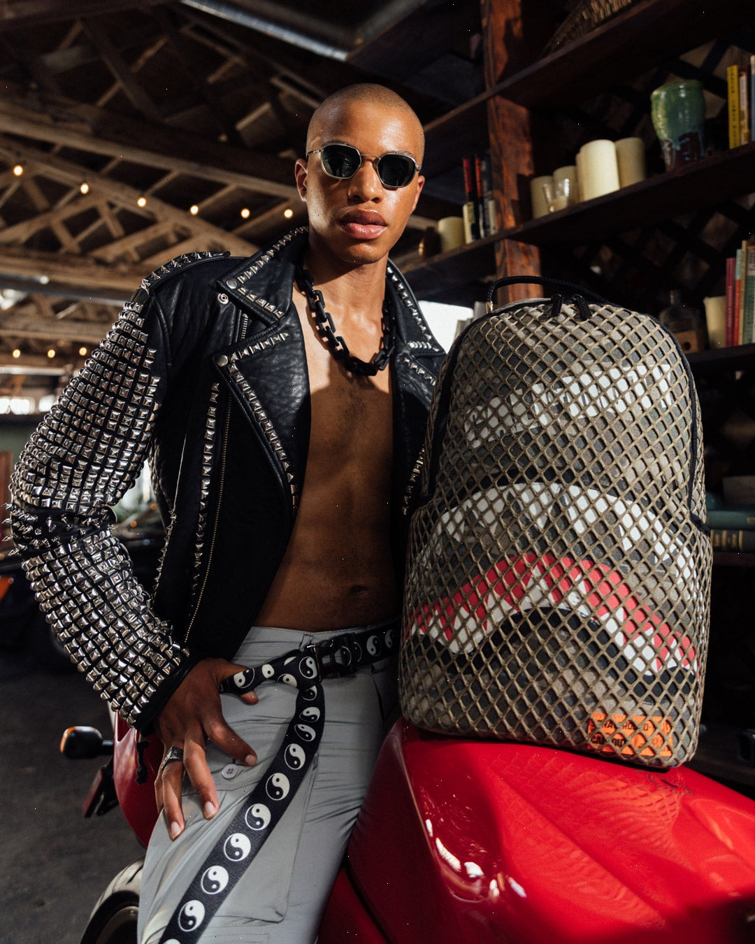 ExteriorDimensions: 18" x 6" x 11.5" ? Front zipper pocket ? Side pockets ? Zippered Stash pocket ? Separate velour sunglass compartment ? Ergonomic mesh back padding ? Adjustable Straps for custom sizing ? Green zippers with metal hardware ? Metal "Sprayground Authentic" badge ? Slide through back sleeve connects to carry on luggage to free your hands