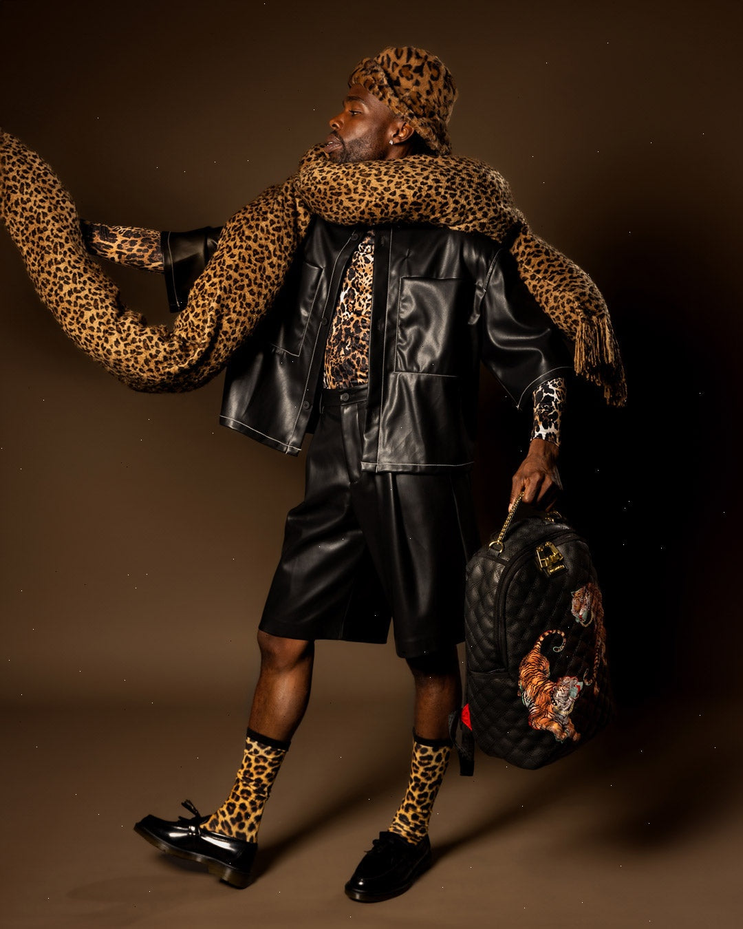 Dimensions: 18" x 6" x 11.5" ? Front zipper pocket ? Side pockets ? Zippered Stash pocket ? Separate velour sunglass compartment ? Ergonomic mesh back padding ? Adjustable Straps for custom sizing ? Gold zippers with metal hardware ? Metal "Sprayground Authentic" badge ? Slide through back sleeve connects to carry-on luggage to free your hands