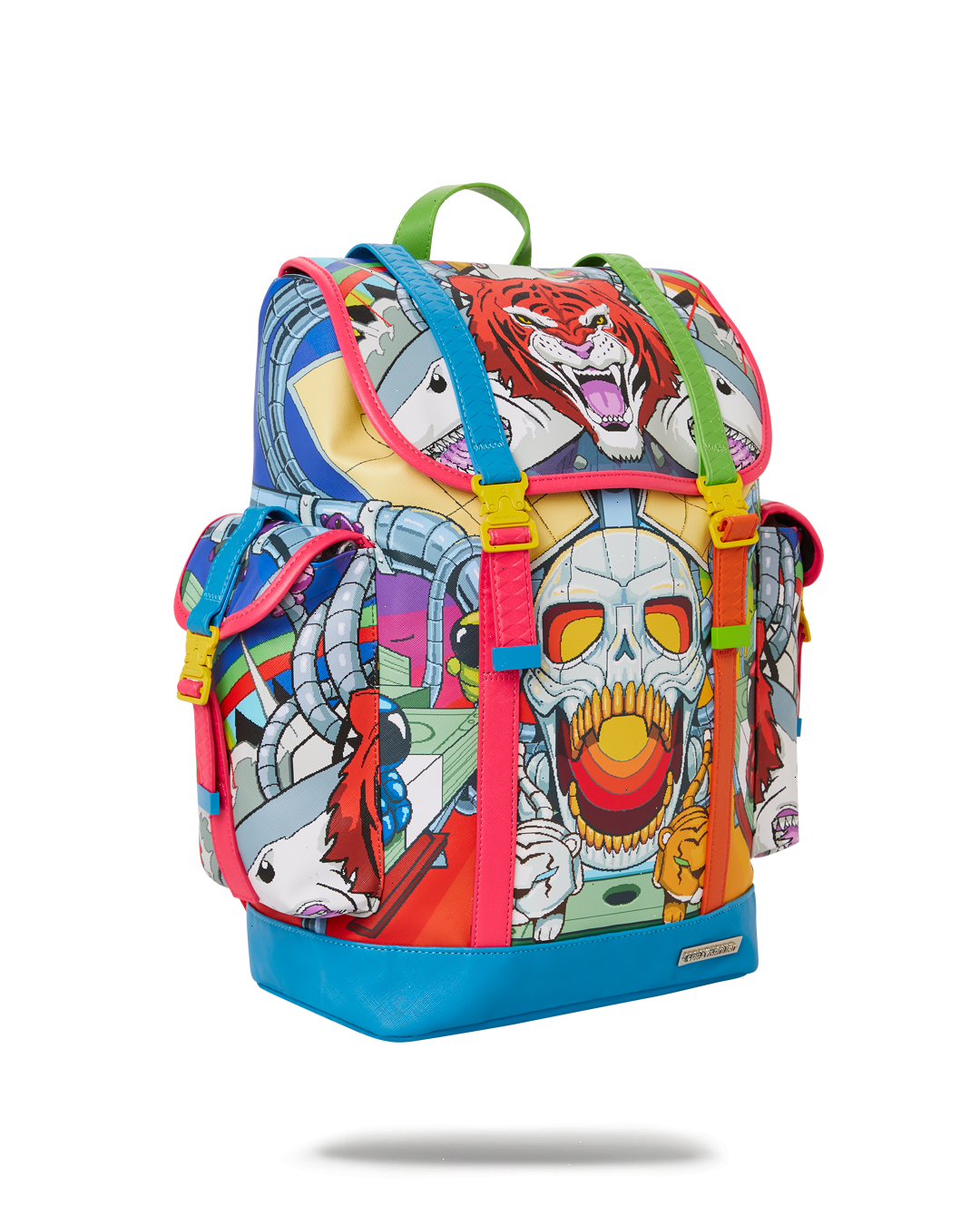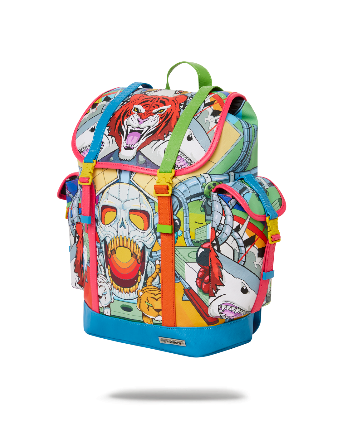 Dimensions: 18" x 6" x 11.5" ? Top Flap opening w/ adjustable metal enamel buckles and drawstring closure ? Two side cargo pockets with metal enamel buckles and drawstring closures ? Zippered Stash pocket ? Ergonomic mesh back padding ? Adjustable Straps for custom sizing ? Embossed logo on back strap