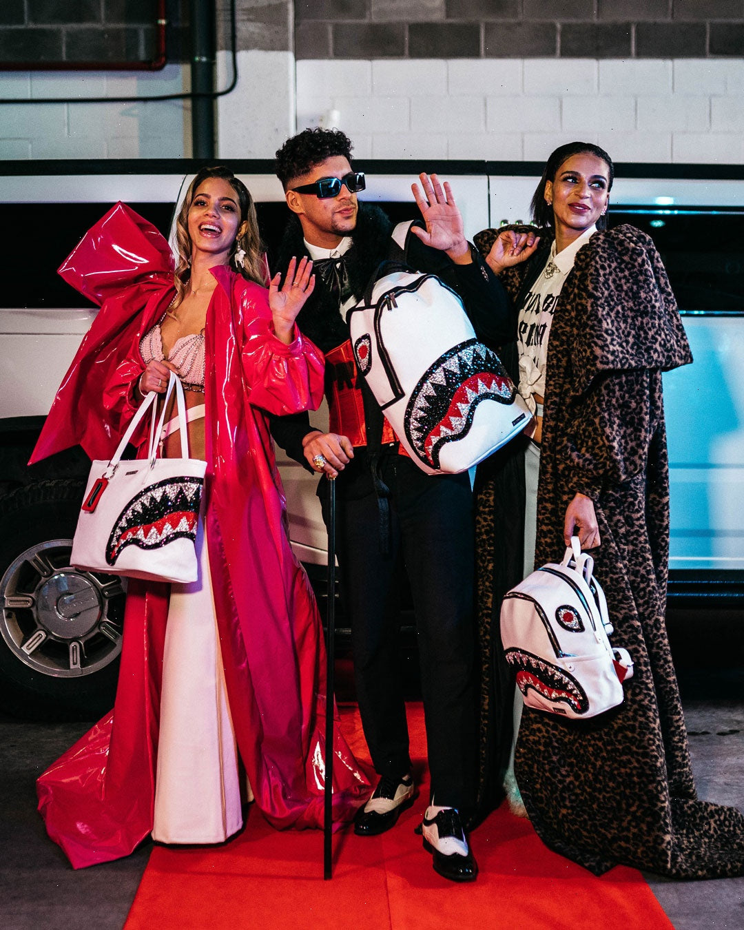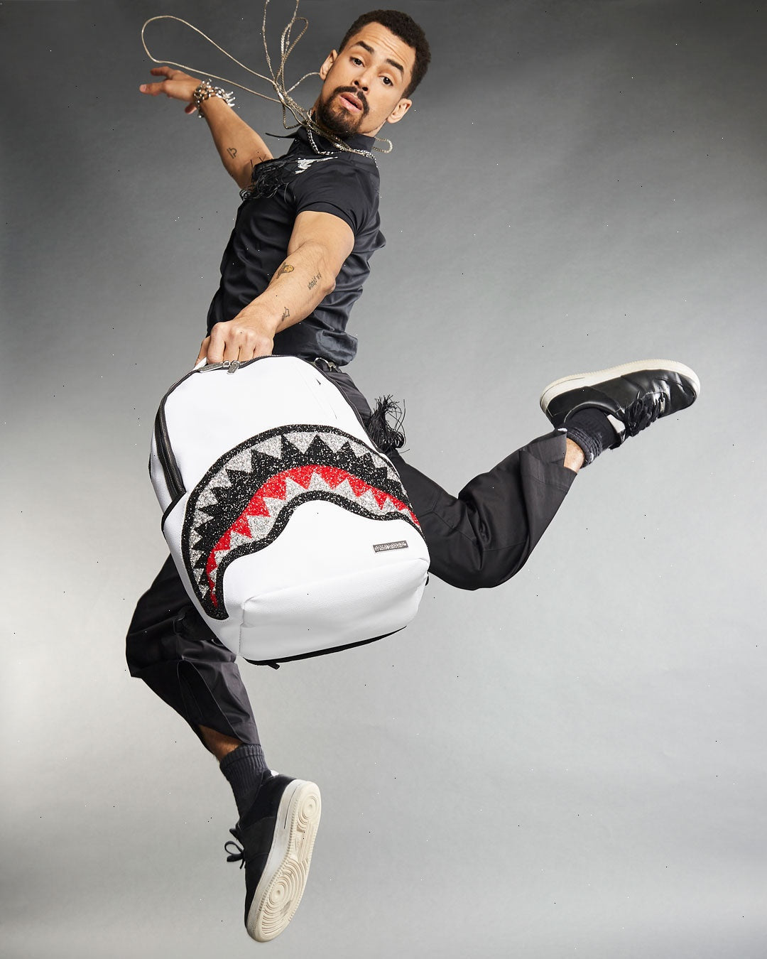ExteriorDimensions: 18" x 6" x 11.5" ? Front zipper pocket ? Side pockets ? Zippered Stash pocket ? Separate velour sunglass compartment ? Ergonomic mesh back padding ? Adjustable Straps for custom sizing ? Gold zippers with metal hardware ? Metal "Sprayground Authentic" badge ? Slide through back sleeve connects to carry-on luggage to free your hands
