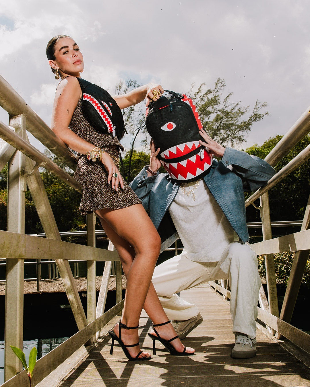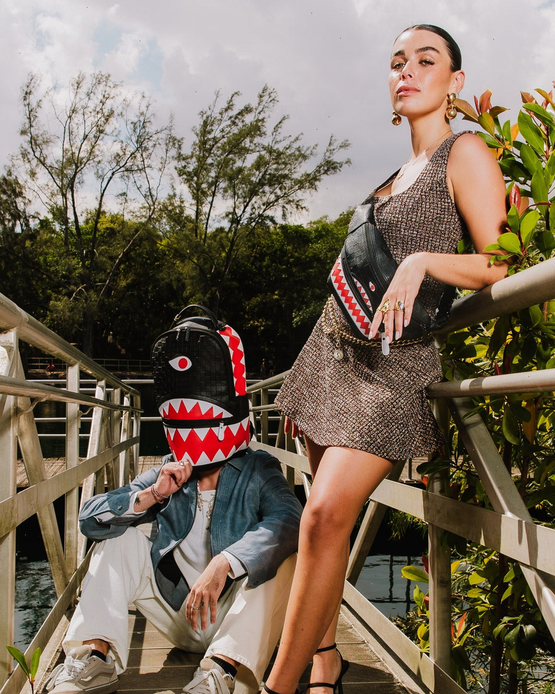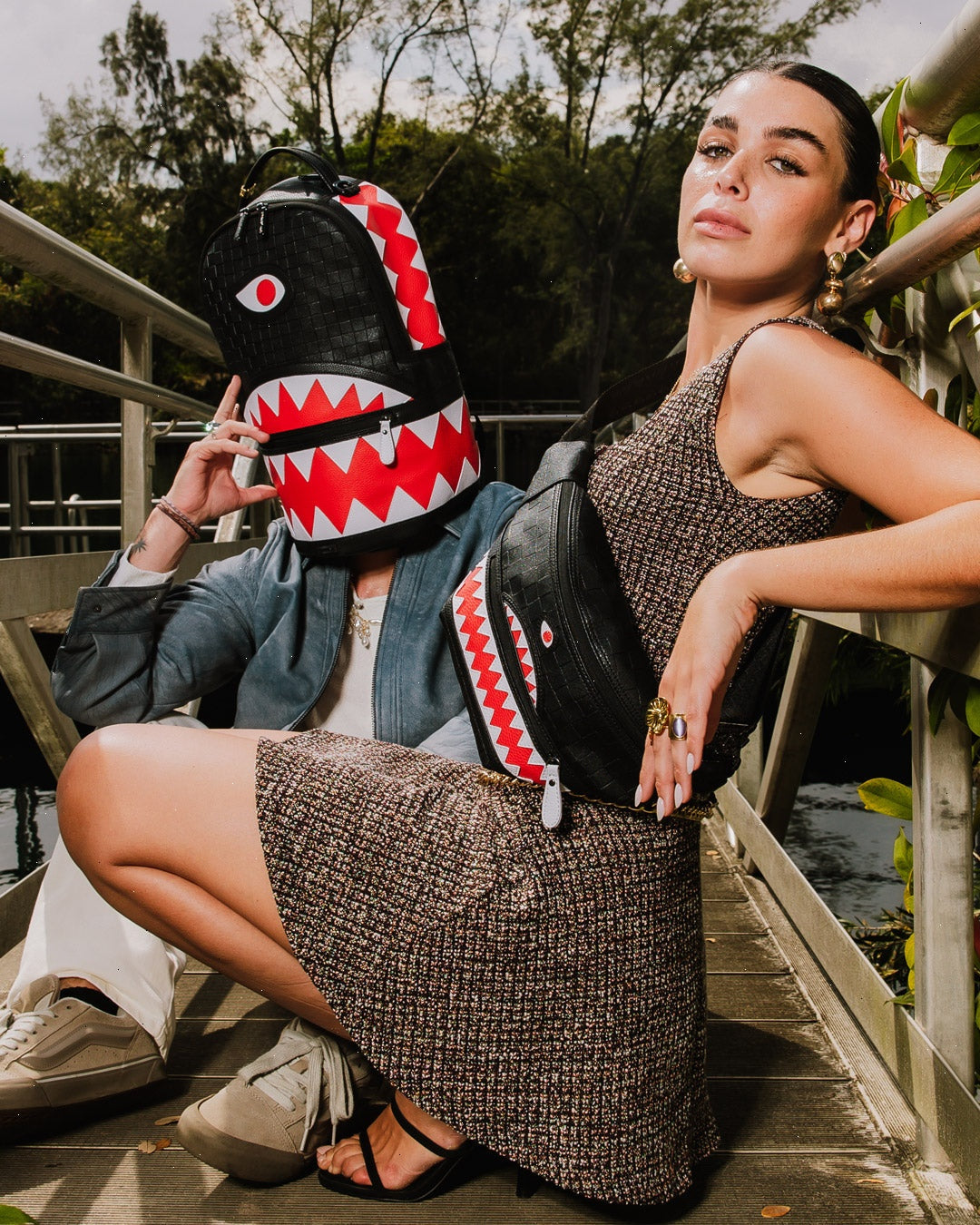 Dimensions: 18" x 6" x 11.5" ? Front zipper pocket ? Side pockets ? Zippered Stash pocket ? Separate velour sunglass compartment ? Ergonomic mesh back padding ? Adjustable Straps for custom sizing ? Gold zippers with metal hardware ? Metal "Sprayground Authentic" badge ? Slide through back sleeve connects to carry-on luggage to free your hands