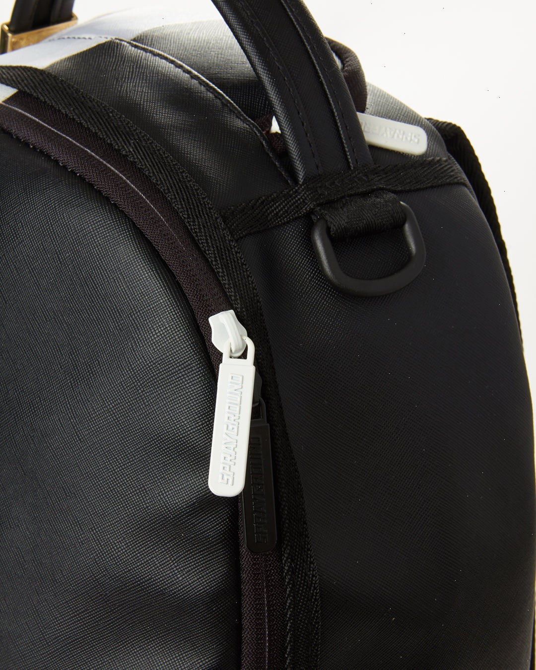 ExteriorDimensions: 18" x 6" x 11.5" ? Front zipper pocket ? Side pockets ? Zippered Stash pocket ? Separate velour sunglass compartment ? Ergonomic mesh back padding ? Adjustable Straps for custom sizing ? Black and white zippers with metal hardware ? Metal "Sprayground Authentic" badge ? Slide through back sleeve connects to carry-on luggage to free your hands