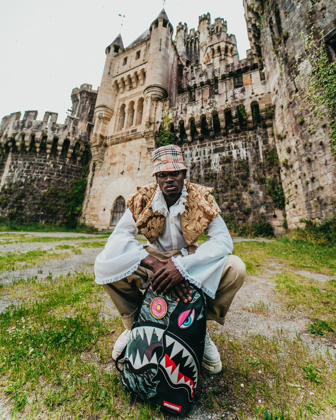 Dimensions: 18" x 6" x 11.5" ? Front zipper pocket ? Side pockets ? Zippered Stash pocket ? Separate velour sunglass compartment ? Ergonomic mesh back padding ? Adjustable Straps for custom sizing ? Gold zippers with metal hardware ? Metal "Sprayground Authentic" badge ? Slide through back sleeve connects to carry-on luggage to free your hands