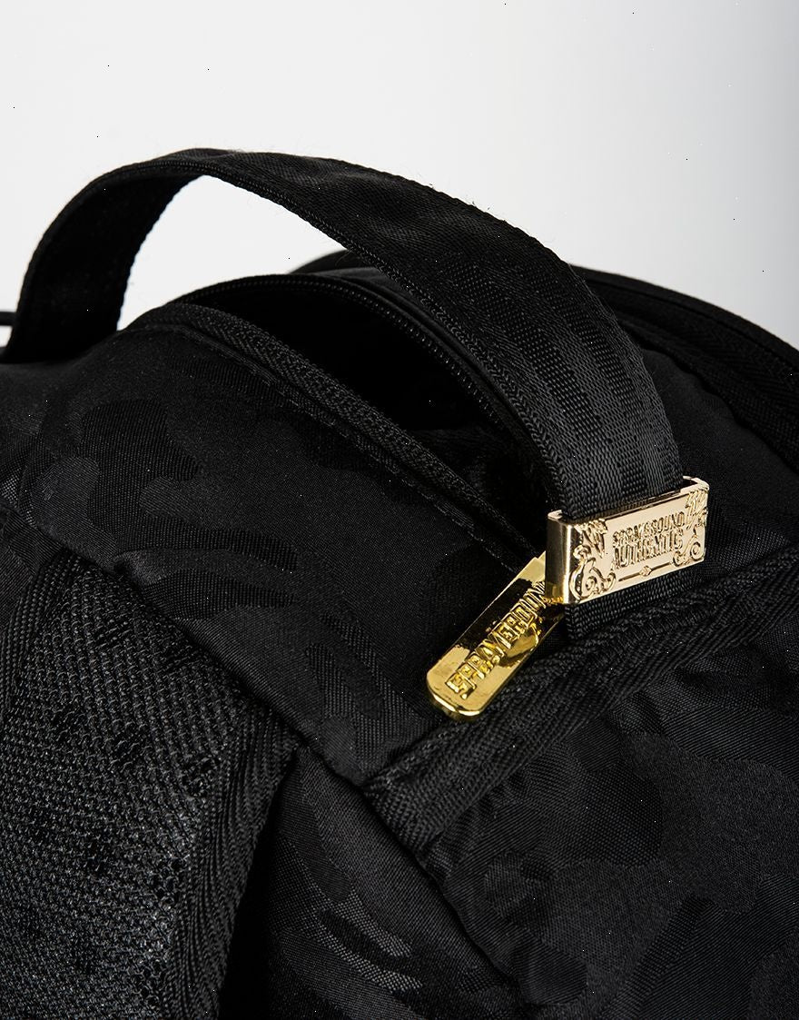 ExteriorDimensions: 18" x 6" x 11.5" ? Front zipper pocket ? Side pockets ? Zippered Stash pocket ? Ergonomic mesh back padding ? Adjustable Straps for custom sizing ? Nylon Zippers with Metal Hardware ? Metal "Sprayground Authentic" badge ? Slide through back sleeve connects to Carry on luggage to free your hands