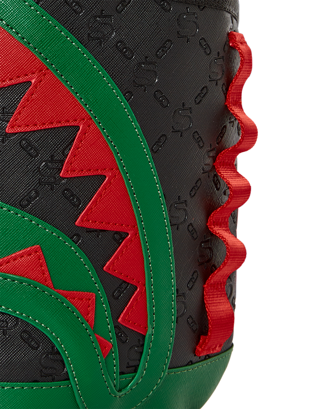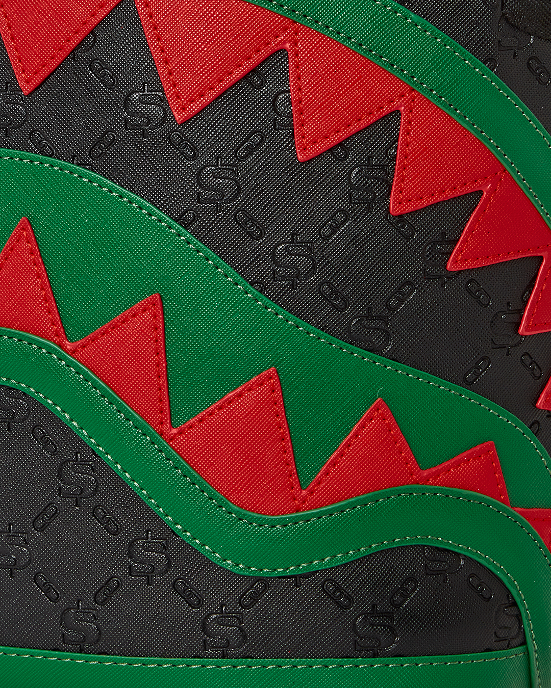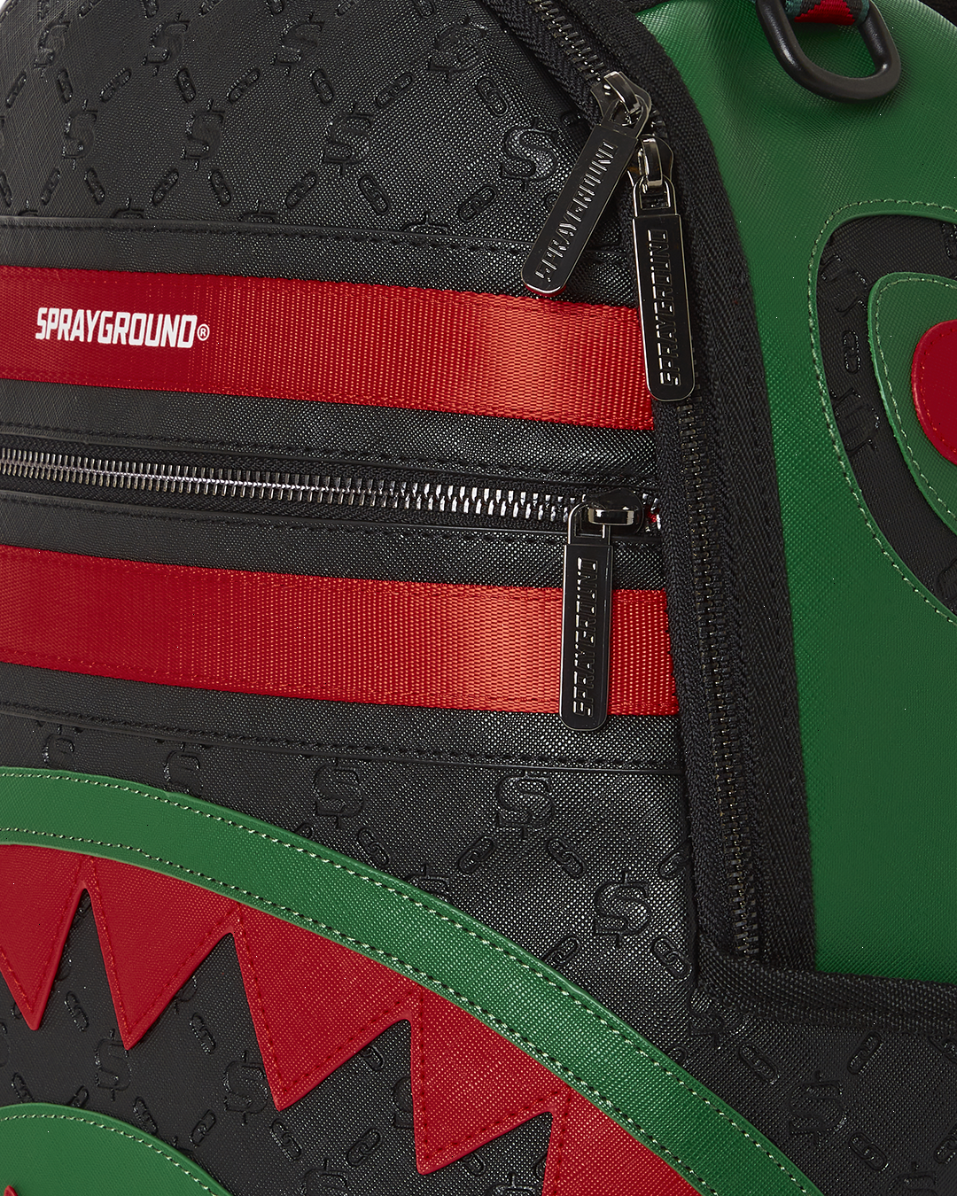 Dimensions: 18" x 6" x 11.5" ? Front zipper pocket ? Side pockets ? Zippered Stash pocket ? Separate velour sunglass compartment ? Ergonomic mesh back padding ? Adjustable Straps for custom sizing ? Gold zippers with metal hardware ? Metal "Sprayground Authentic" badge ? Slide through back sleeve connects to carry-on luggage to free your hands