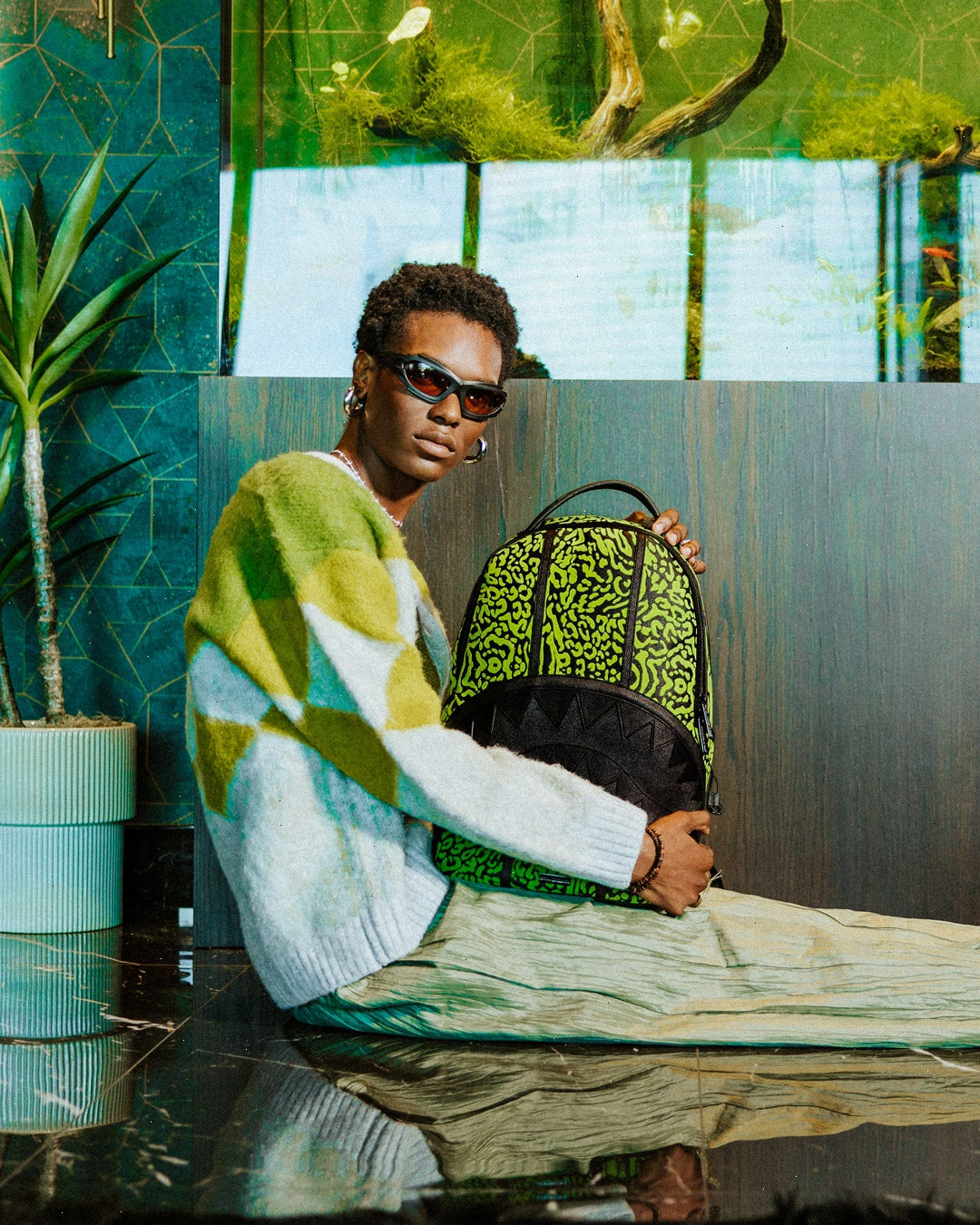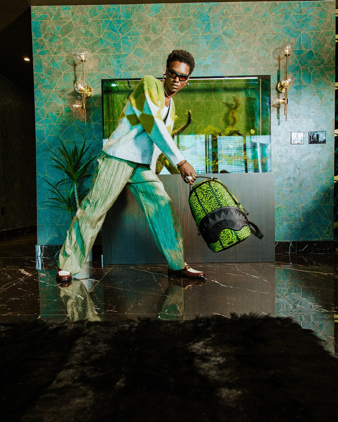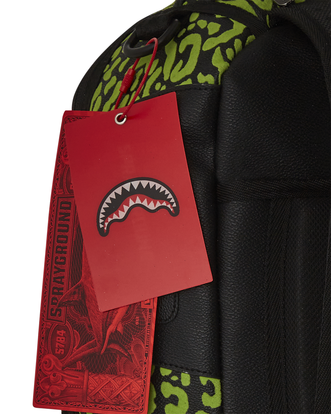 Dimensions: 18" x 6" x 11.5" ? Front zipper pocket ? Side pockets ? Zippered Stash pocket ? Separate velour sunglass compartment ? Ergonomic mesh back padding ? Adjustable Straps for custom sizing ? Gold zippers with metal hardware ? Metal "Sprayground Authentic" badge ? Slide through back sleeve connects to carry-on luggage to free your hands