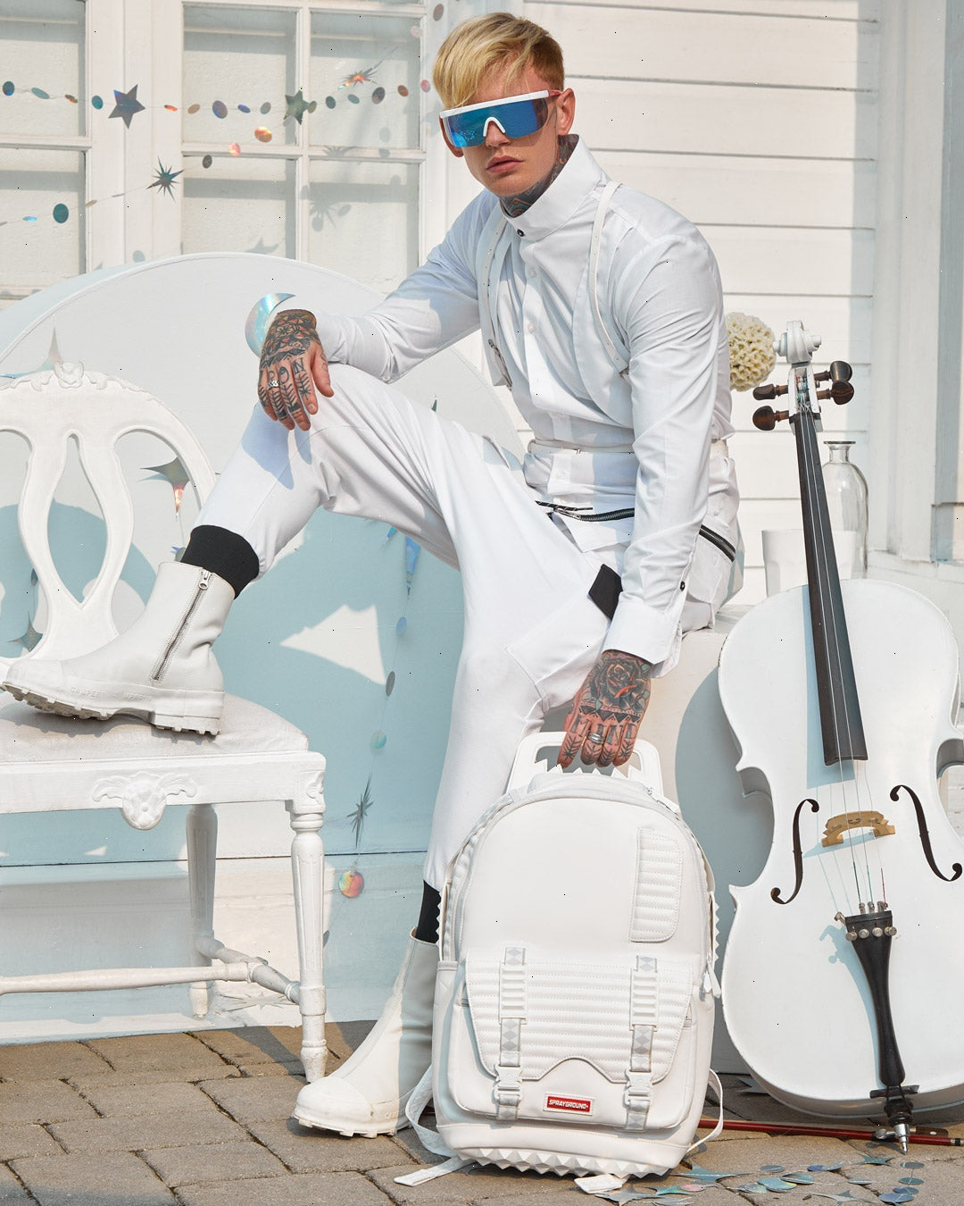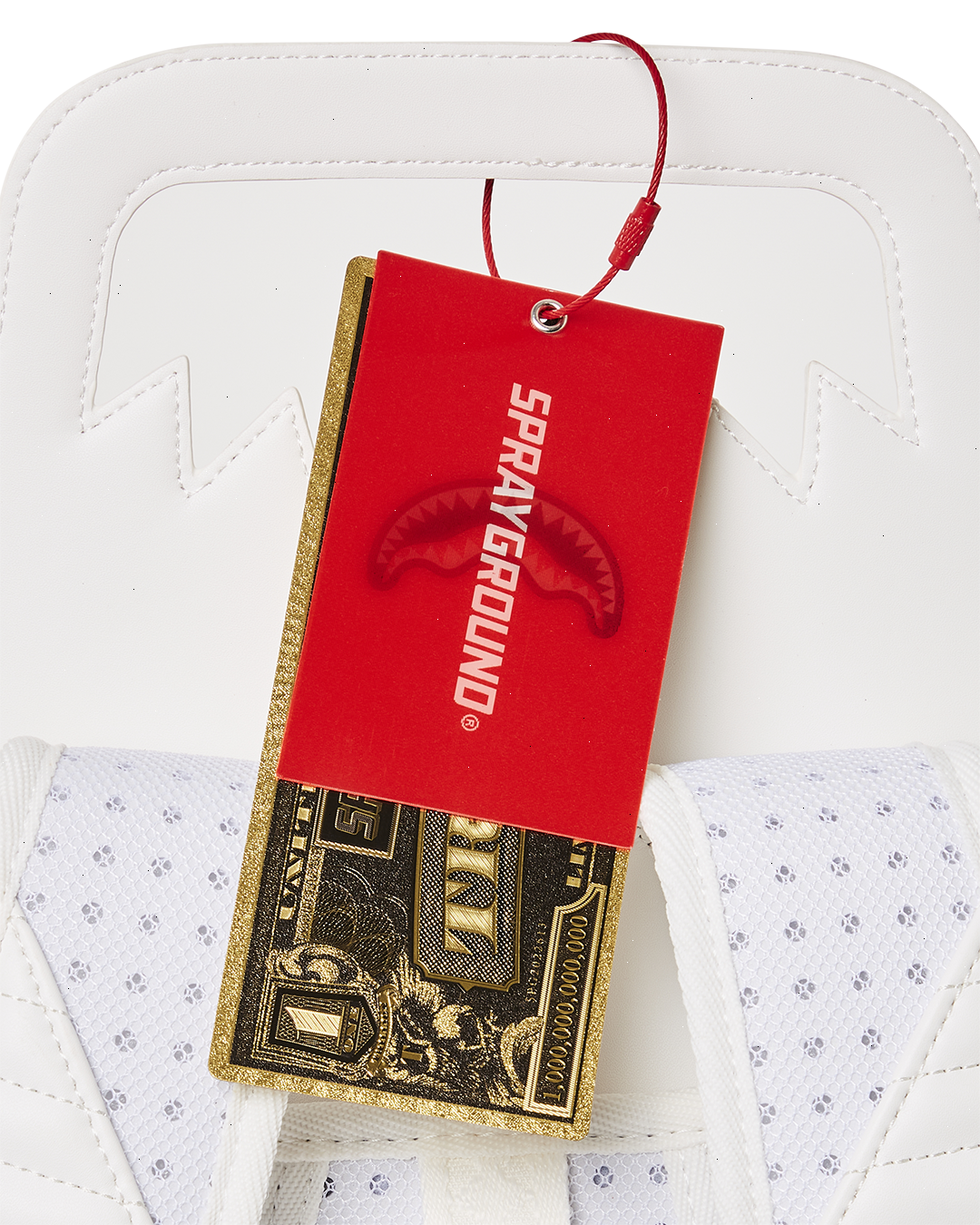 ? Front zipper pocket ? Side pockets ? Zippered Stash pocket ? Separate velour sunglass compartment ? Ergonomic mesh back padding ? Adjustable Straps for custom sizing ? Gold zippers with metal hardware ? Metal "Sprayground Authentic" badge ? Slide through back sleeve connects to carry-on luggage to free your hands