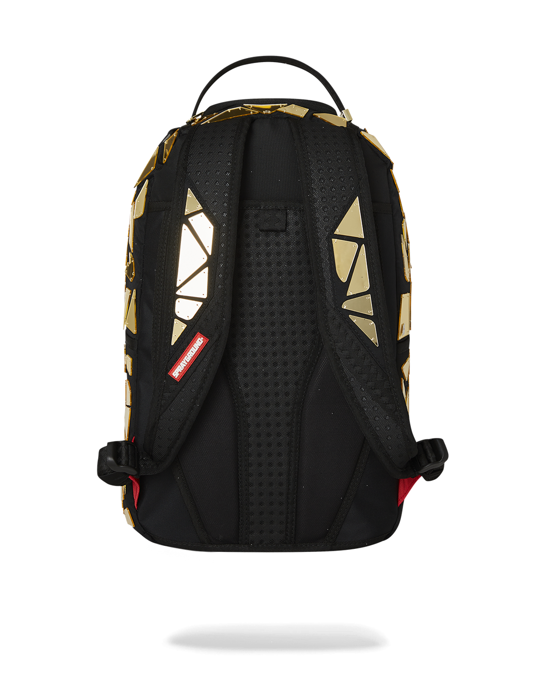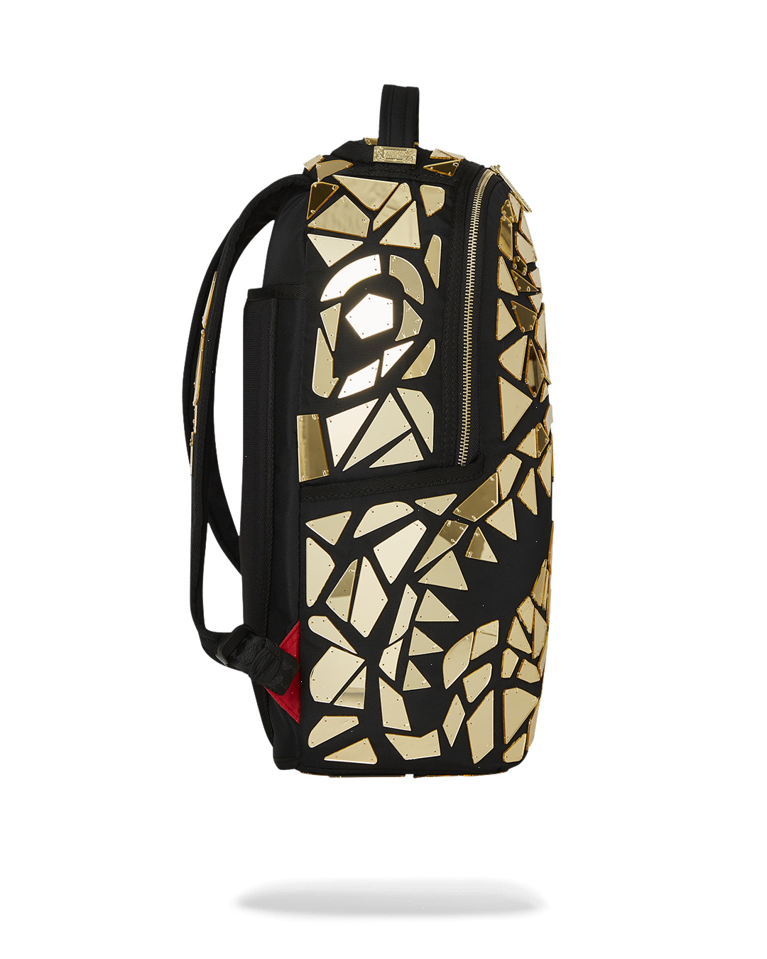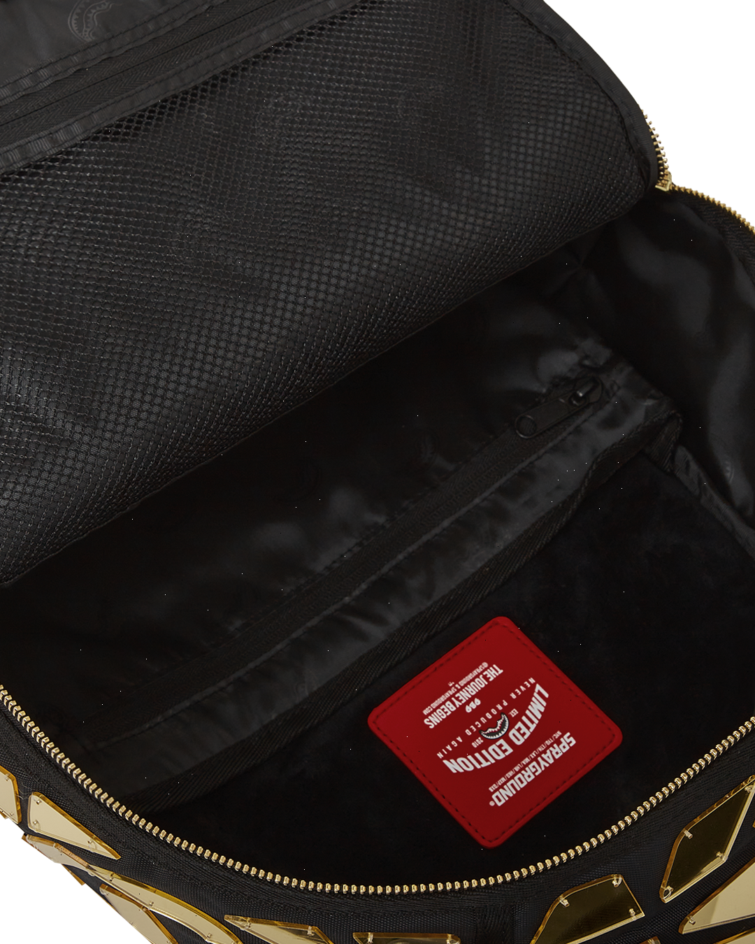 Dimensions: 18" x 6" x 11.5" ? Front zipper pocket ? Side pockets ? Zippered Stash pocket ? Separate velour sunglass compartment ? Ergonomic mesh back padding ? Adjustable Straps for custom sizing ? Gold zippers with metal hardware ? Metal "Sprayground Authentic" badge ? Slide through back sleeve connects to carry-on luggage to free your hands