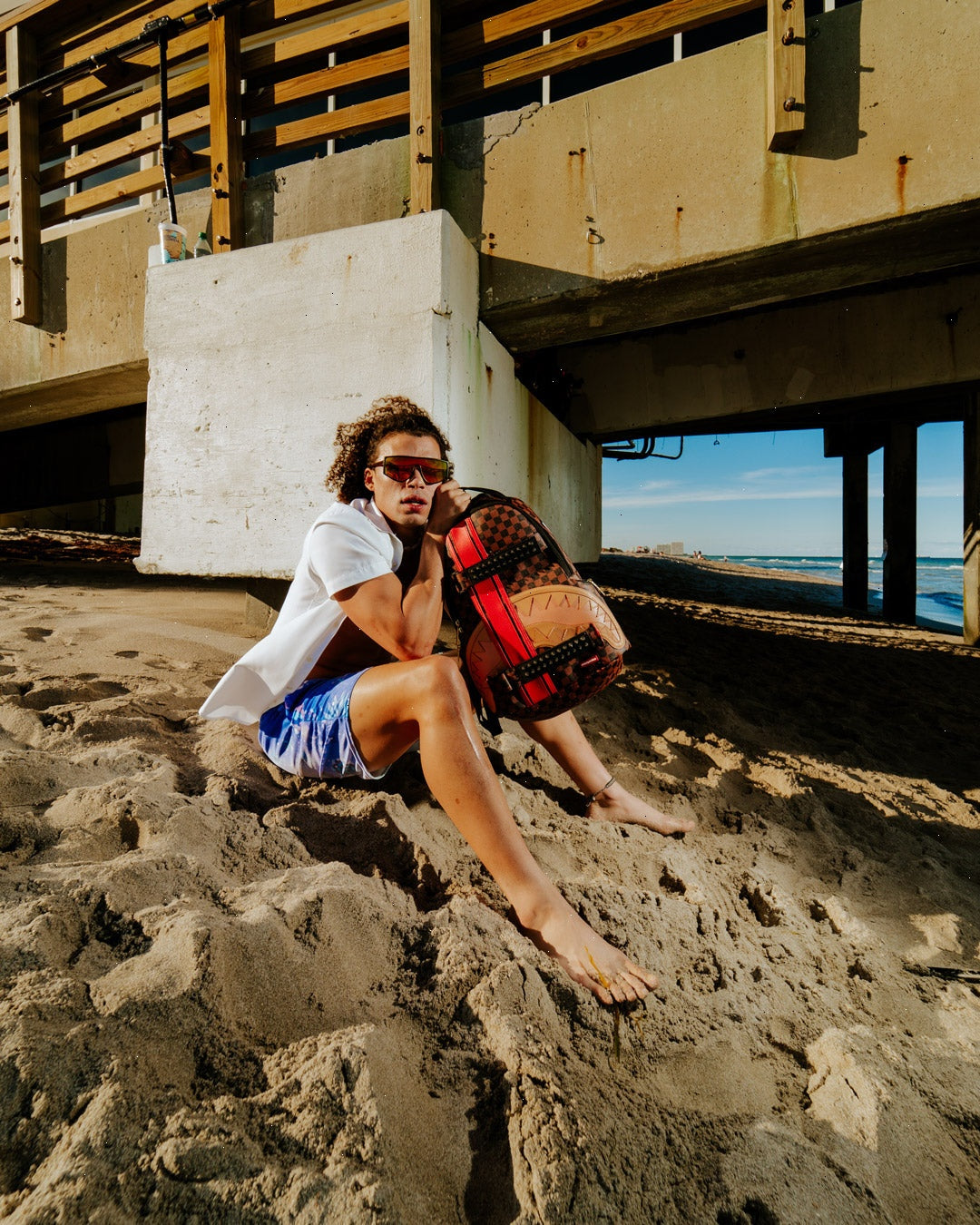 Dimensions: 19" x 8.5", Front straps hold skateboard 1.5" W and adjustable, waist strap