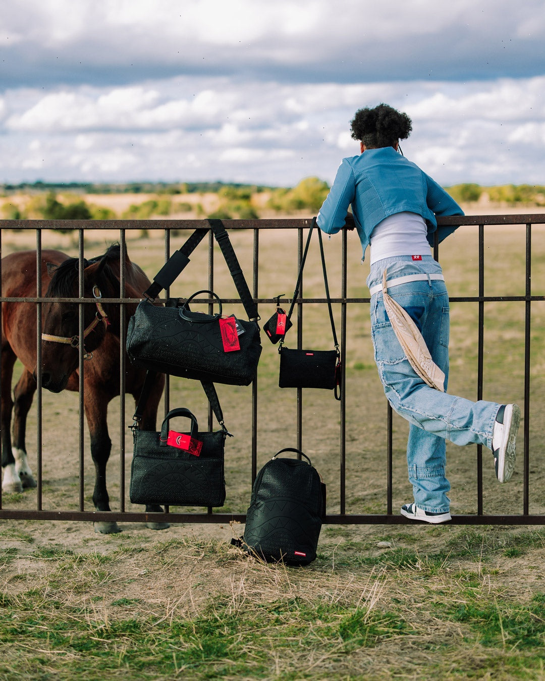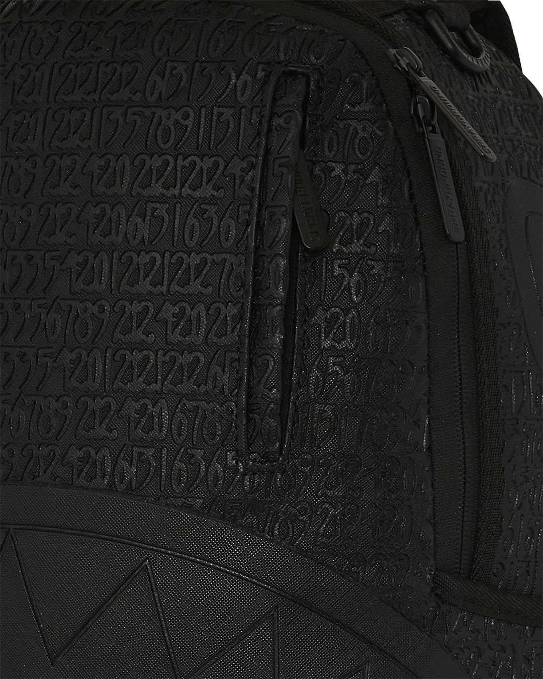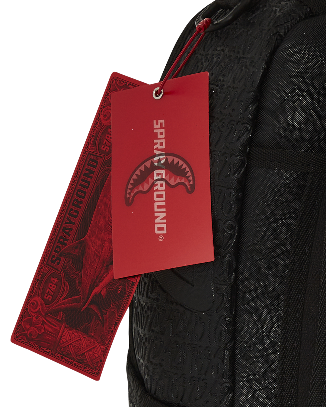 Dimensions: 18" x 6" x 11.5" ? Front zipper pocket ? Side pockets ? Zippered Stash pocket ? Separate velour sunglass compartment ? Ergonomic mesh back padding ? Adjustable Straps for custom sizing ? Gold zippers with metal hardware ? Metal "Sprayground Authentic" badge ? Slide through back sleeve connects to carry-on luggage to free your hands