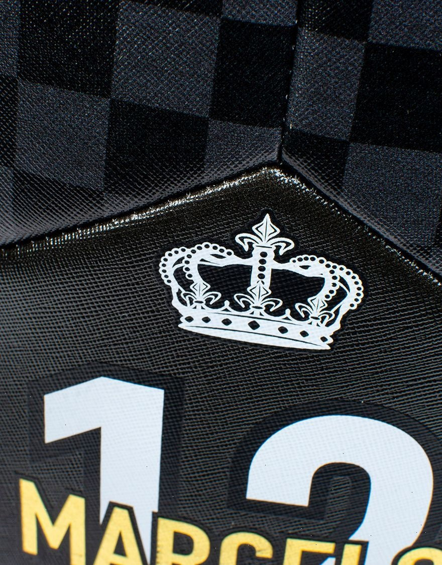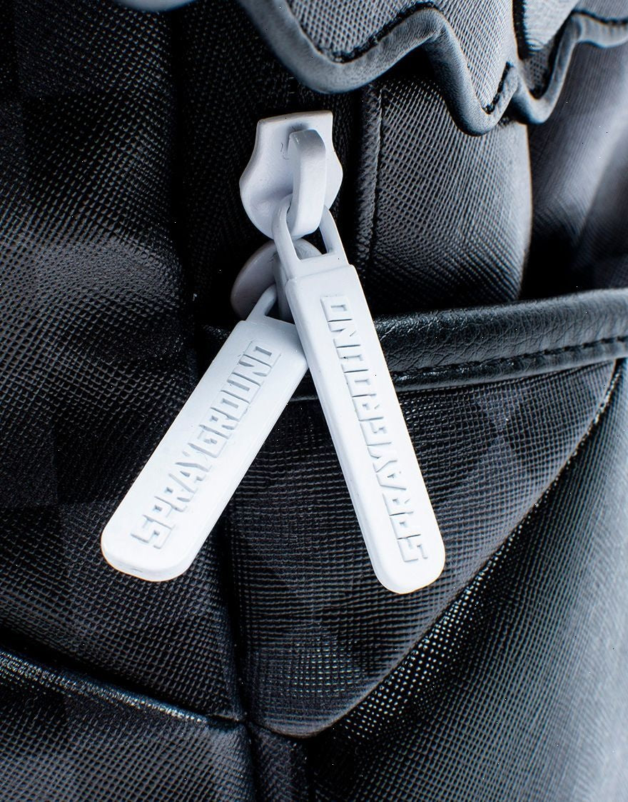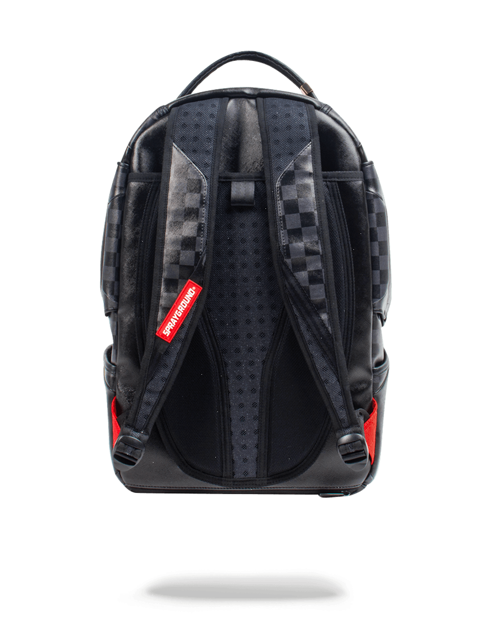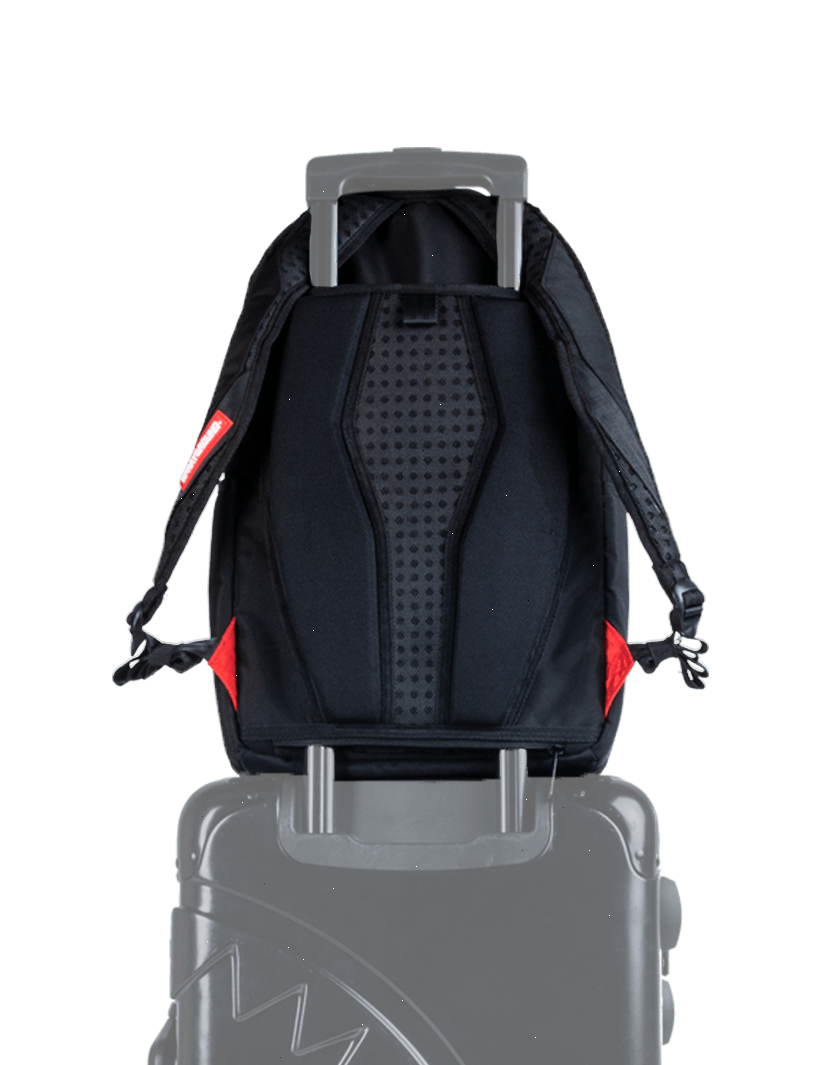ExteriorDimensions: 18" x 6" x 11.5" ? Front zipper pocket ? Side pockets ? Zippered Stash pocket ? Ergonomic mesh back padding ? Adjustable Straps for custom sizing ? Nylon Zippers with Metal Hardware ? Metal "Sprayground Authentic" badge ? Slide through back sleeve connects to Carry on luggage to free your hands