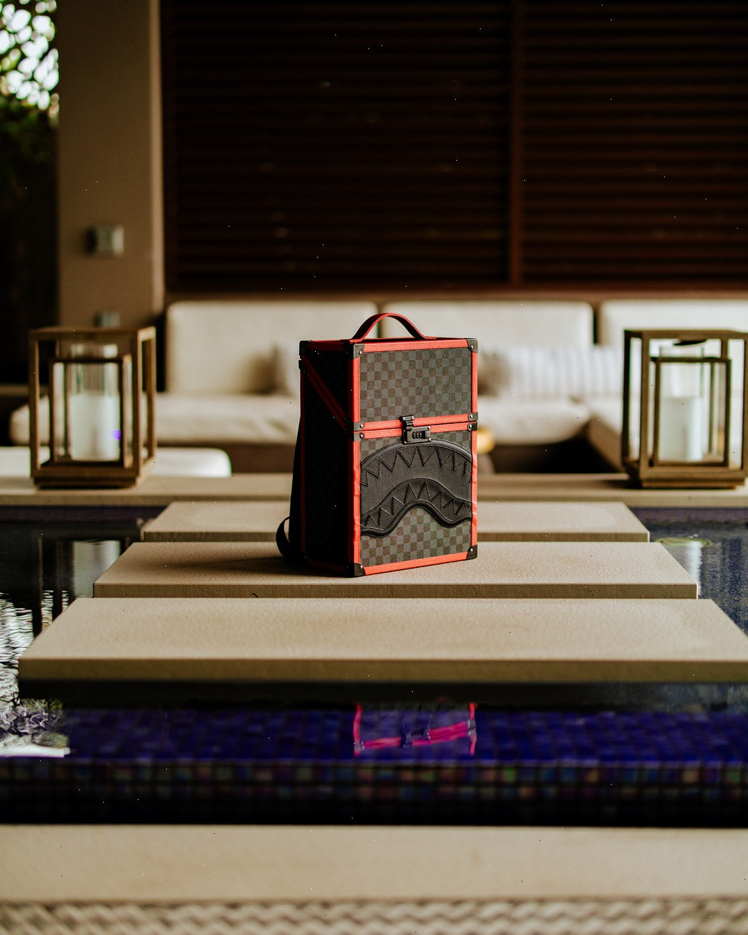 This unique Backpack is an instant classic. Drawing inspiration from a boxy shaped backpack that travelers and hikers used to use as one of the earlier designs of backpacks in the early 1900*s. Reinforcing it with a wooden frame and checkered shark pattern and luxe interior design for the modern adventurer. I call it the CHATURANGA SHARK to pay homage to the first ever board game that featured a CHESS PATTERN invented in India called Chaturanga Board Game.. Which would evolve into the CHECKERED PATTERN we all love and know in Fashion.?
