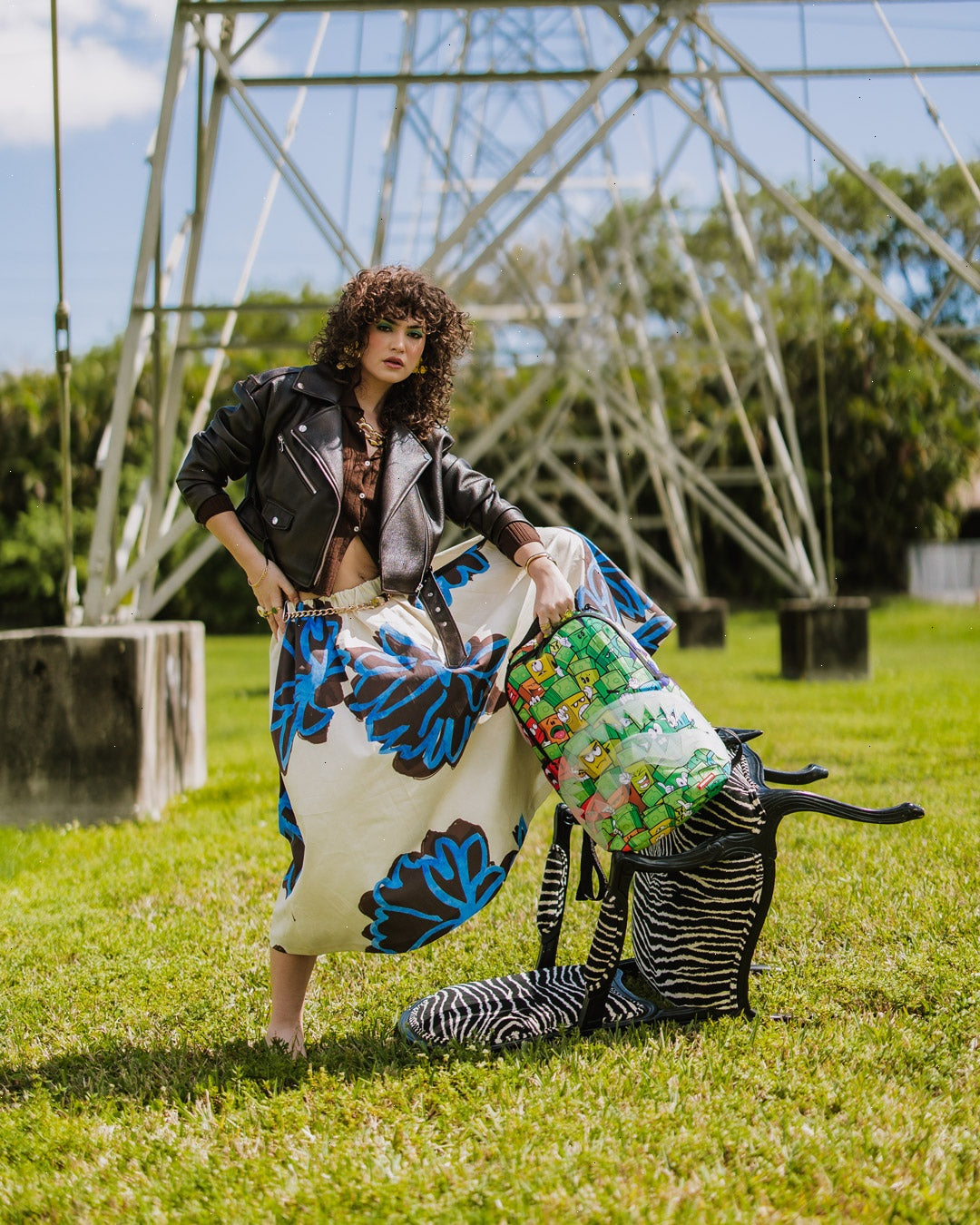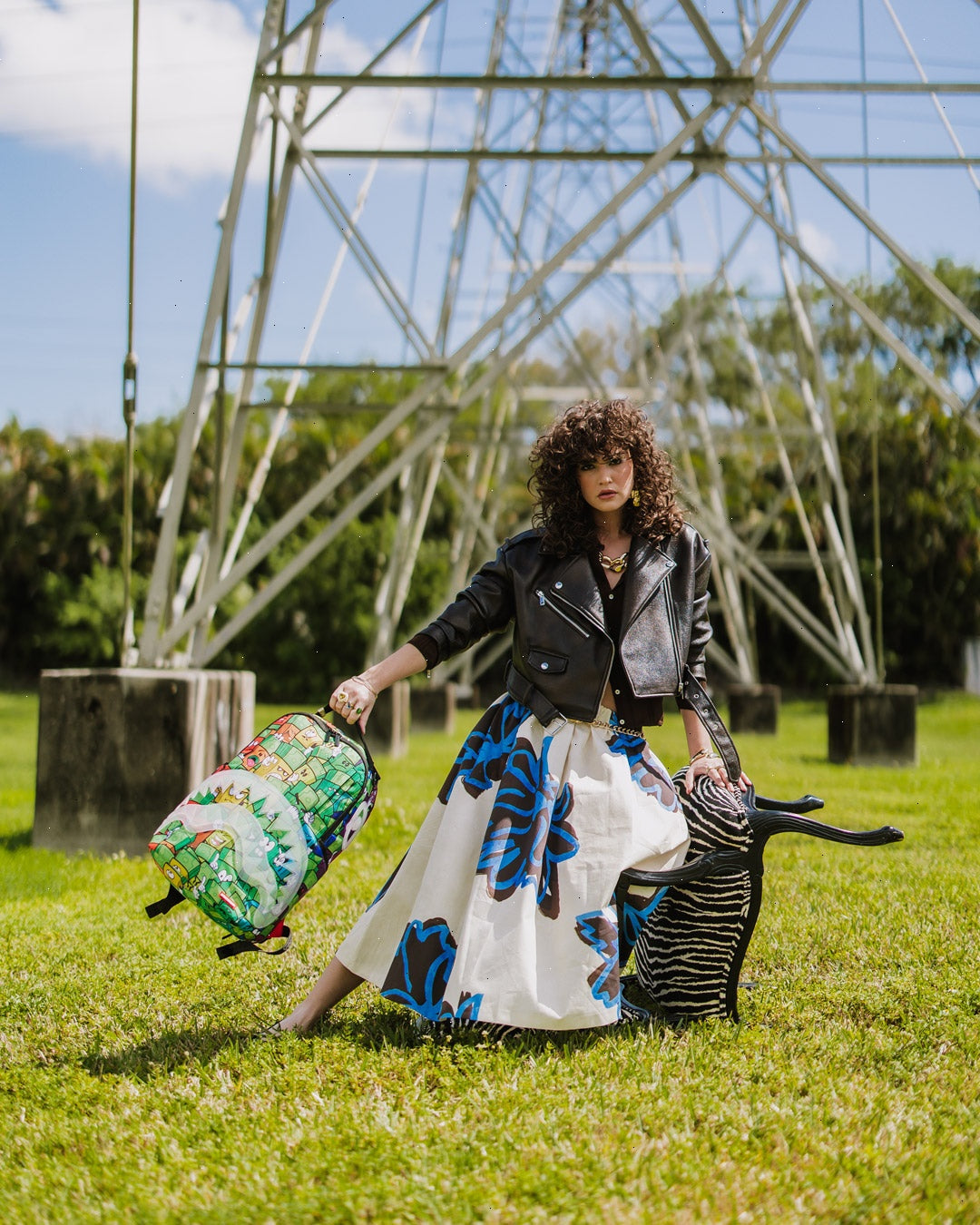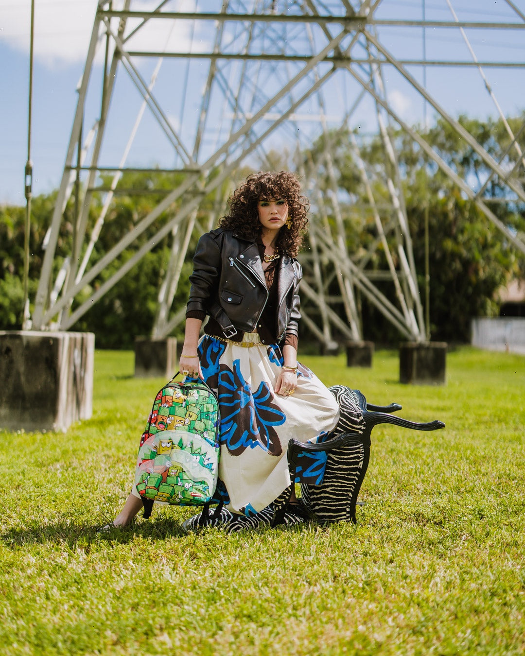 Dimensions: 18" x 6" x 11.5" ? Front zipper pocket ? Side pockets ? Zippered Stash pocket ? Separate velour sunglass compartment ? Ergonomic mesh back padding ? Adjustable Straps for custom sizing ? Gold zippers with metal hardware ? Metal "Sprayground Authentic" badge ? Slide through back sleeve connects to carry-on luggage to free your hands