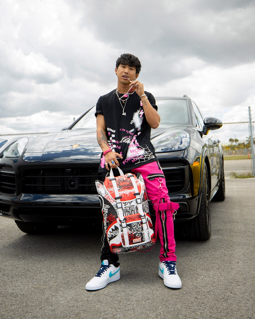 ExteriorDimensions: 20.5" x 5" x 11.5" ? Top Flap opening w/ adjustable magnetic snap buckle closure ? Draw-string closure ? Front pocket with adjustable magnetic snap buckle closure ? Ergonomic mesh back padding ? Adjustable straps for custom sizing ? Nylon zippers with metal hardware ? Embossed sharkteeth straps ? Slide through back sleeve connects to carry-on luggage to free your hands