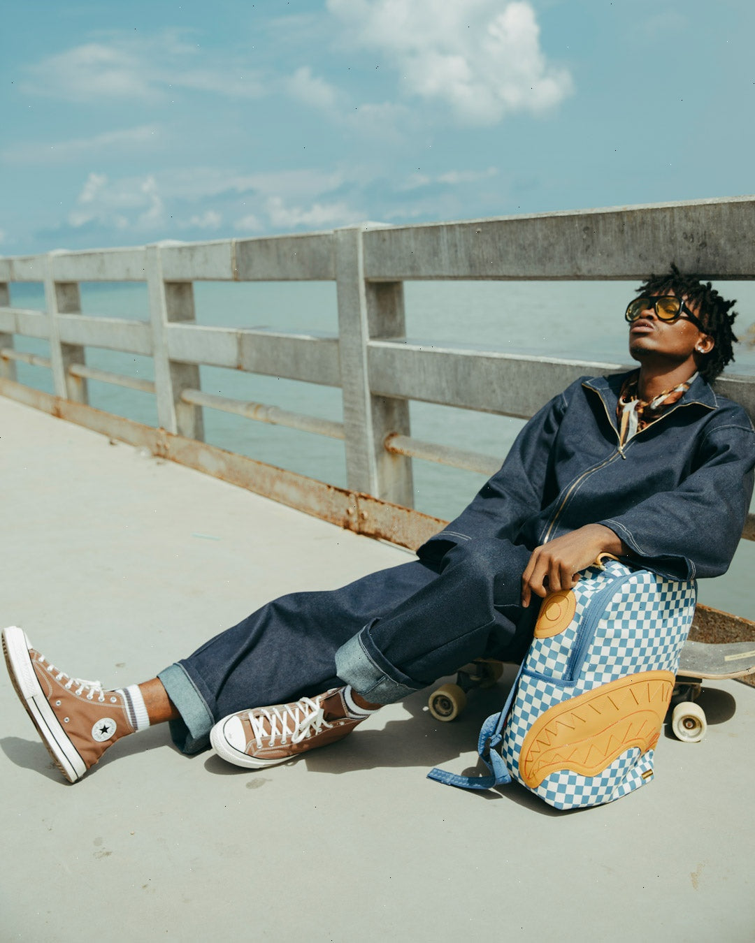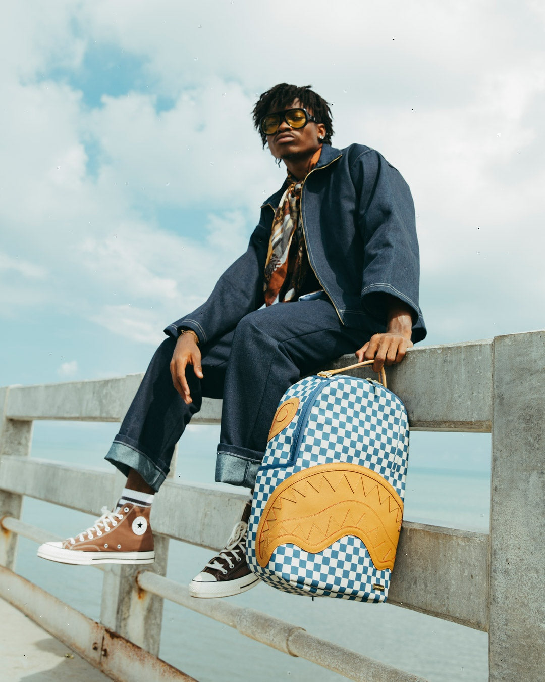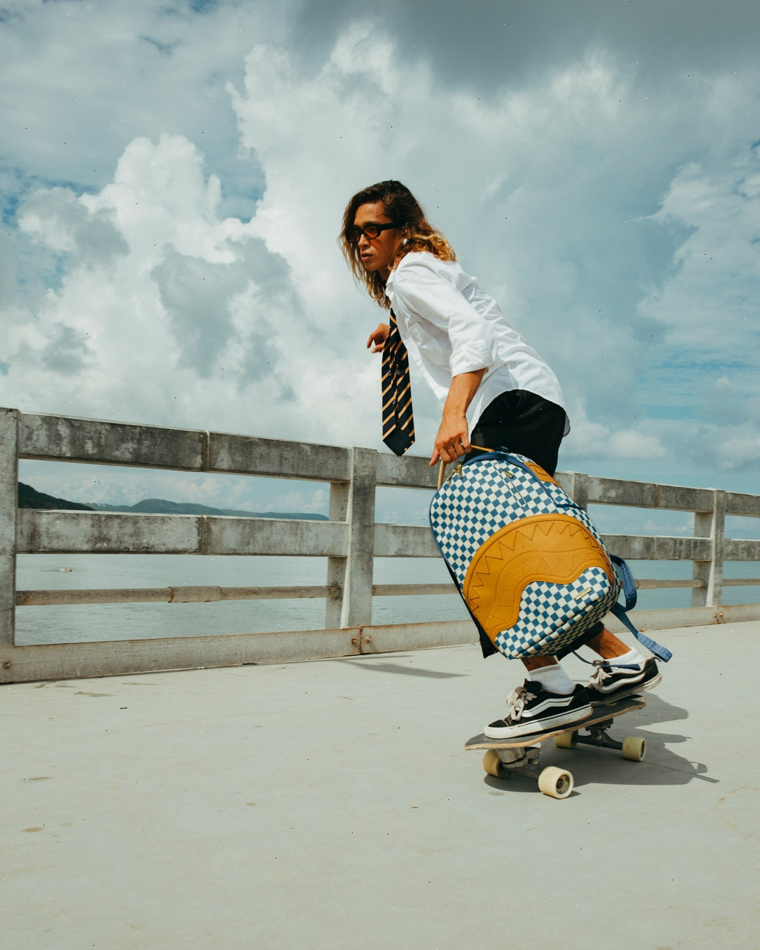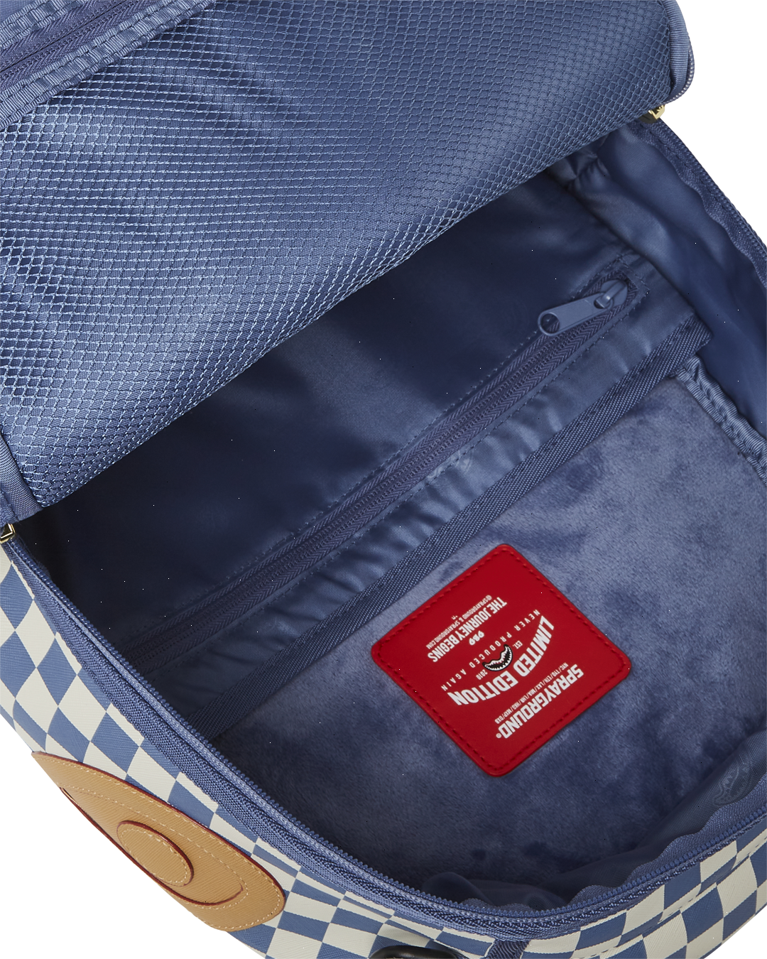 Dimensions: 18" x 6" x 11.5" ? Front zipper pocket ? Side pockets ? Zippered Stash pocket ? Separate velour sunglass compartment ? Ergonomic mesh back padding ? Adjustable Straps for custom sizing ? Gold zippers with metal hardware ? Metal "Sprayground Authentic" badge ? Slide through back sleeve connects to carry-on luggage to free your hands