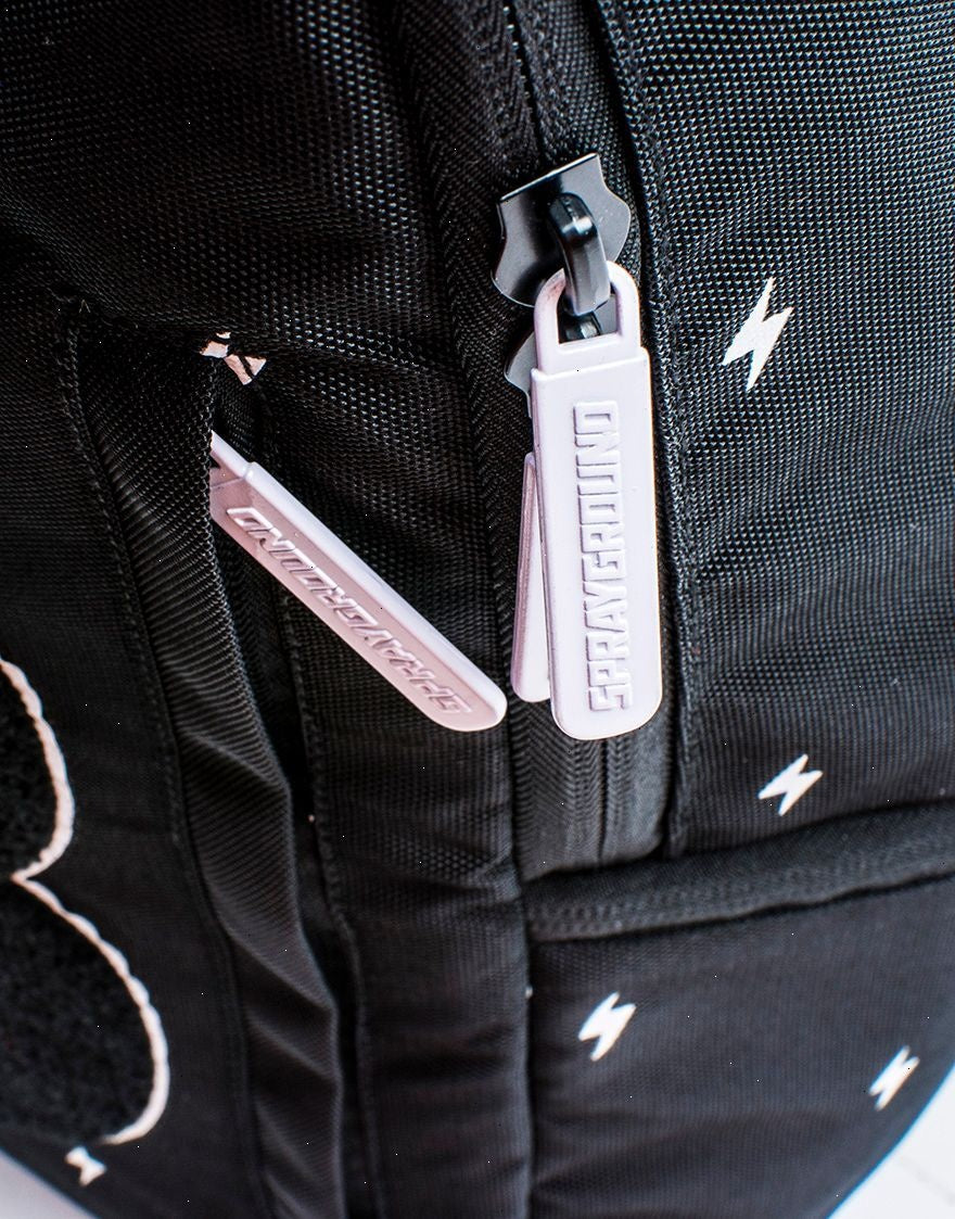 ExteriorDimensions: 18" x 6" x 11.5" ? Front zipper pocket ? Side pockets ? Zippered Stash pocket ? Ergonomic mesh back padding ? Adjustable Straps for custom sizing ? Nylon Zippers with Metal Hardware ? Metal "Sprayground Authentic" badge ? Slide through back sleeve connects to Carry on luggage to free your hands