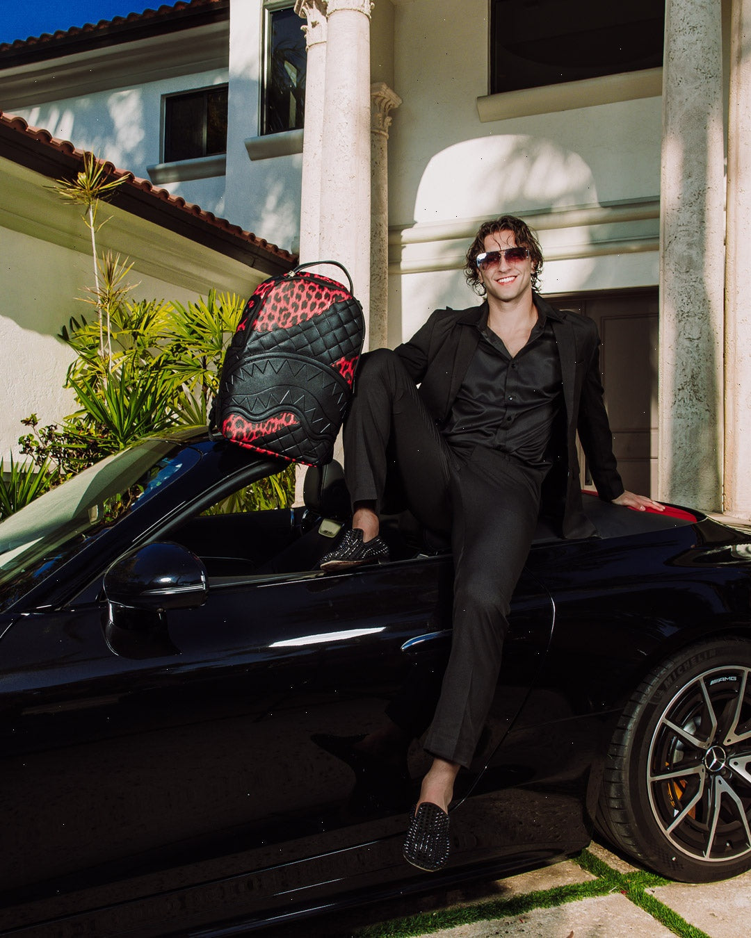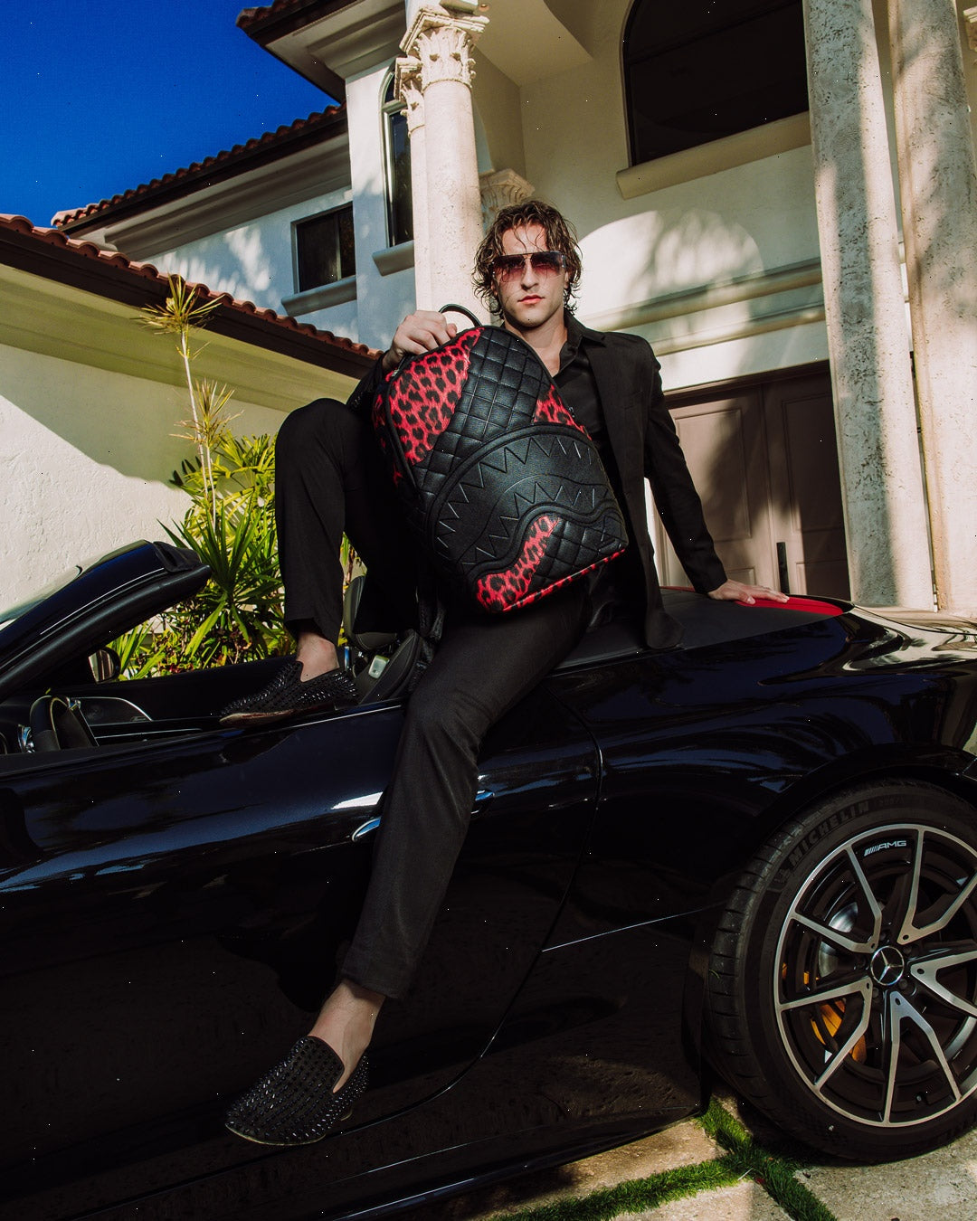 Dimensions: 18" x 6" x 11.5" ? Front zipper pocket ? Side pockets ? Zippered Stash pocket ? Separate velour sunglass compartment ? Ergonomic mesh back padding ? Adjustable Straps for custom sizing ? Gold zippers with metal hardware ? Metal "Sprayground Authentic" badge ? Slide through back sleeve connects to carry-on luggage to free your hands