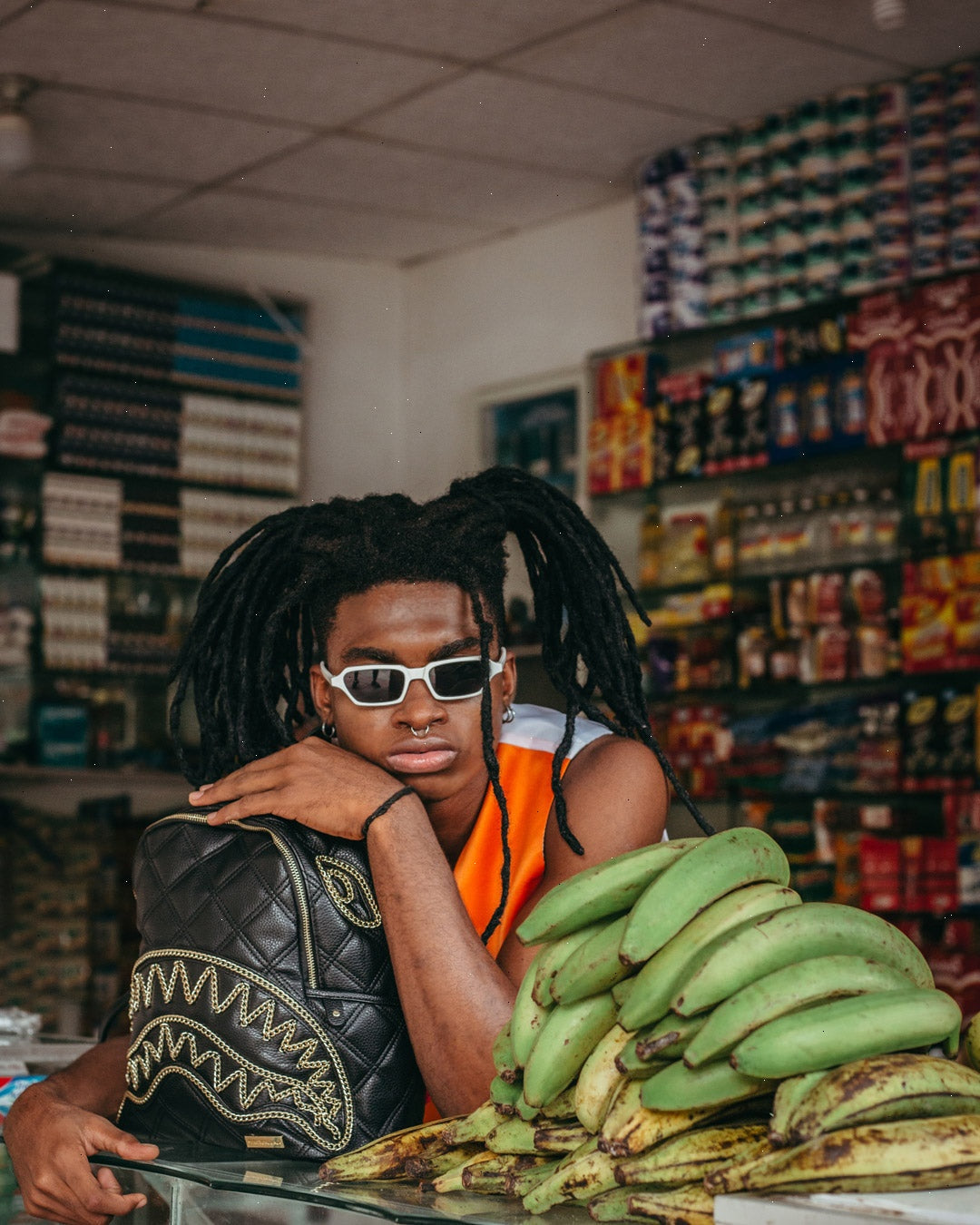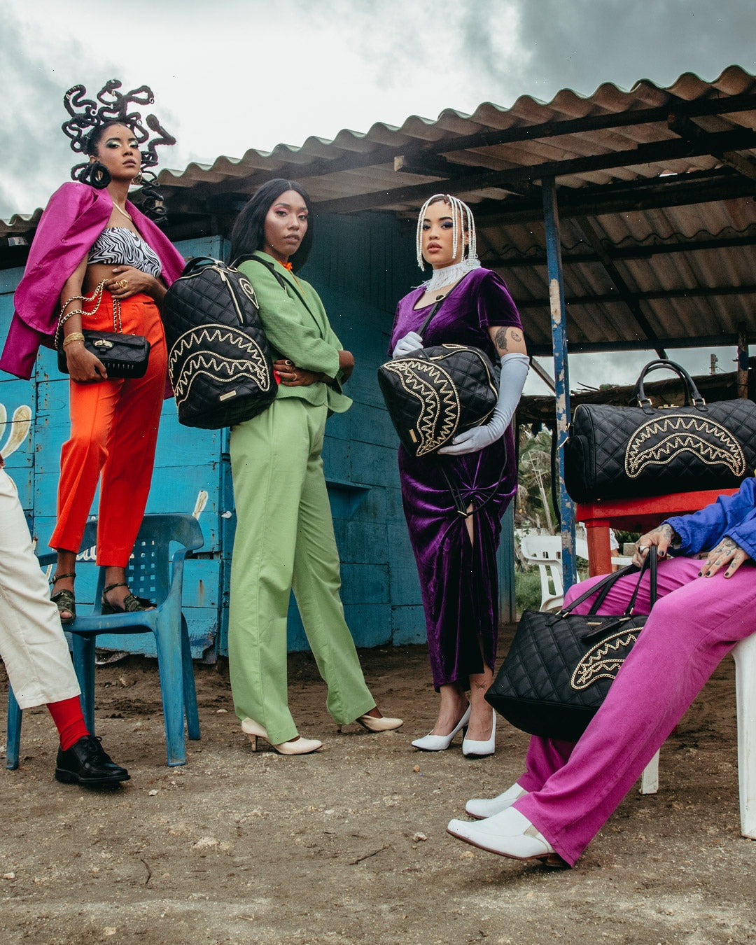 Delicate gold chain applique shark mouth details