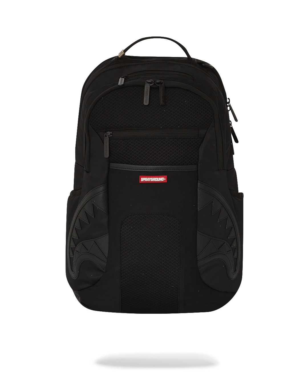 Dimensions: 18" x 6" x 11.5" ? Front zipper pocket ? Side pockets ? Zippered Stash pocket ? Separate velour sunglass compartment ? Ergonomic mesh back padding ? Adjustable Straps for custom sizing ? Gold zippers with metal hardware ? Metal "Sprayground Authentic" badge ? Slide through back sleeve connects to carry-on luggage to free your hands