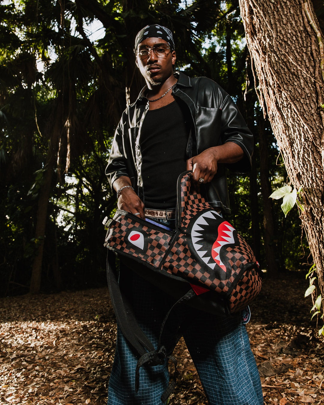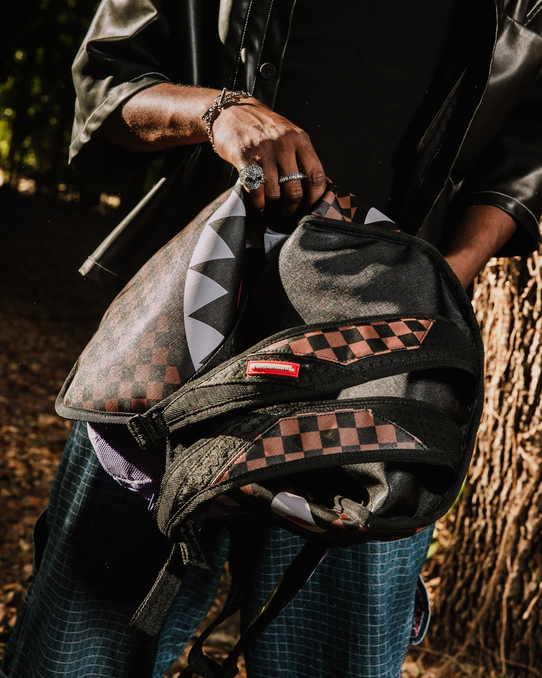 Dimensions: 18" x 6" x 11.5" ? Front zipper pocket ? Side pockets ? Zippered Stash pocket ? Separate velour sunglass compartment ? Ergonomic mesh back padding ? Adjustable Straps for custom sizing ? Gold zippers with metal hardware ? Metal "Sprayground Authentic" badge ? Slide through back sleeve connects to carry-on luggage to free your hands
