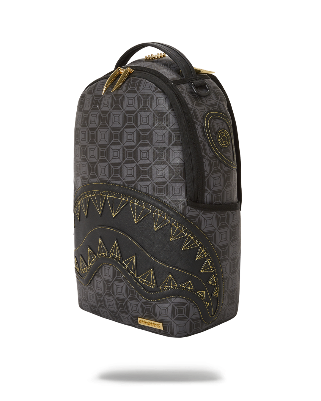 Dimensions: 18" x 6" x 11.5" ? Front zipper pocket ? Side pockets ? Zippered Stash pocket ? Separate velour sunglass compartment ? Ergonomic mesh back padding ? Adjustable Straps for custom sizing ? Gold zippers with metal hardware ? Metal "Sprayground Authentic" badge ? Slide through back sleeve connects to carry-on luggage to free your hands
