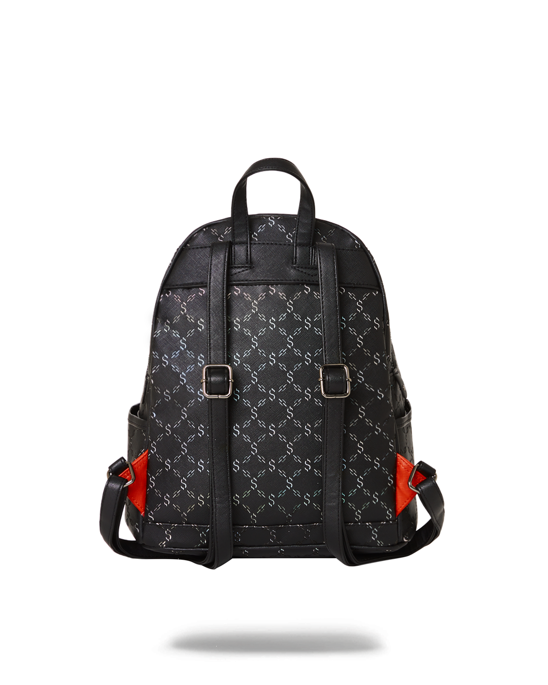 100% PVC with exclusive laser cut money logo pattern applied over metallic iridescent ?fabric to give a touch of shimmer to the fabric