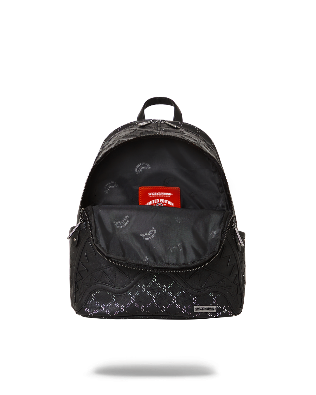Dimensions: 10" x 5" x 11.5" ? Two large main zippered compartments ? Side pockets ? Zippered Stash pocket ? Adjustable straps for custom sizing ? Gold zippers with metal hardware