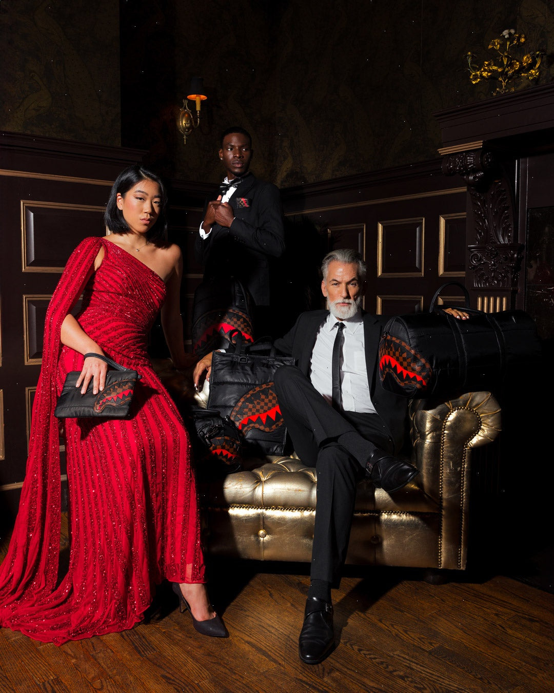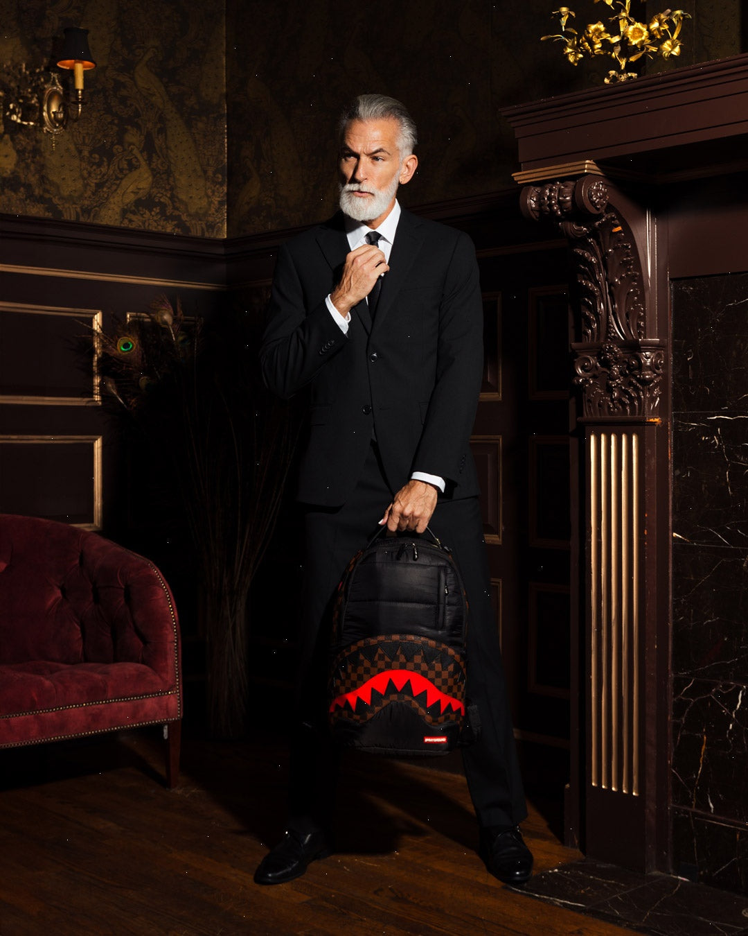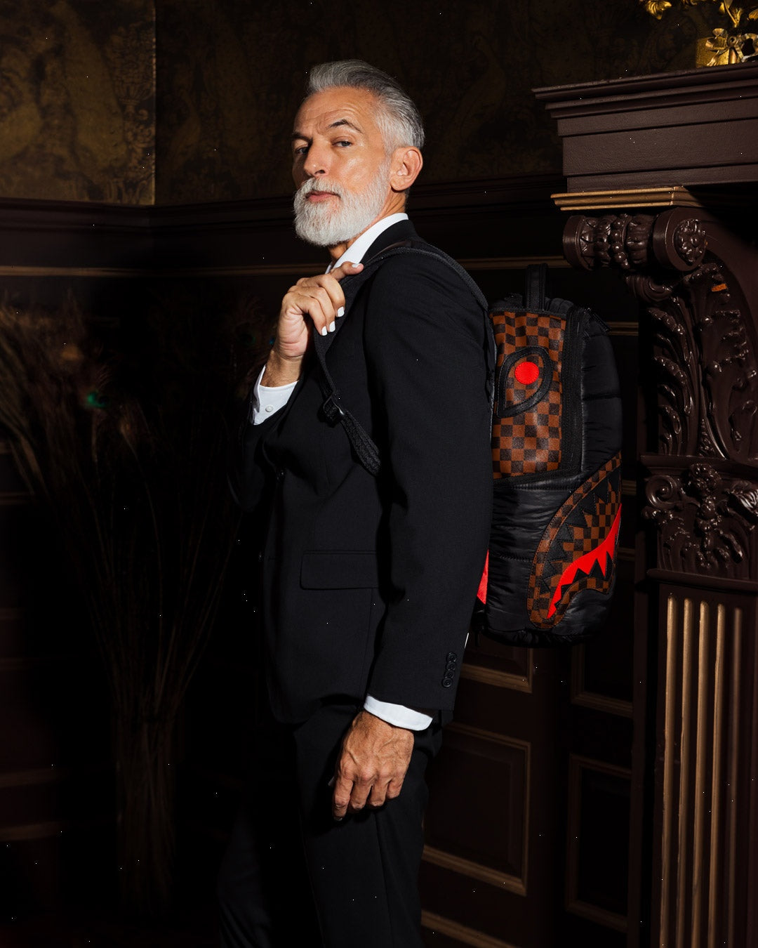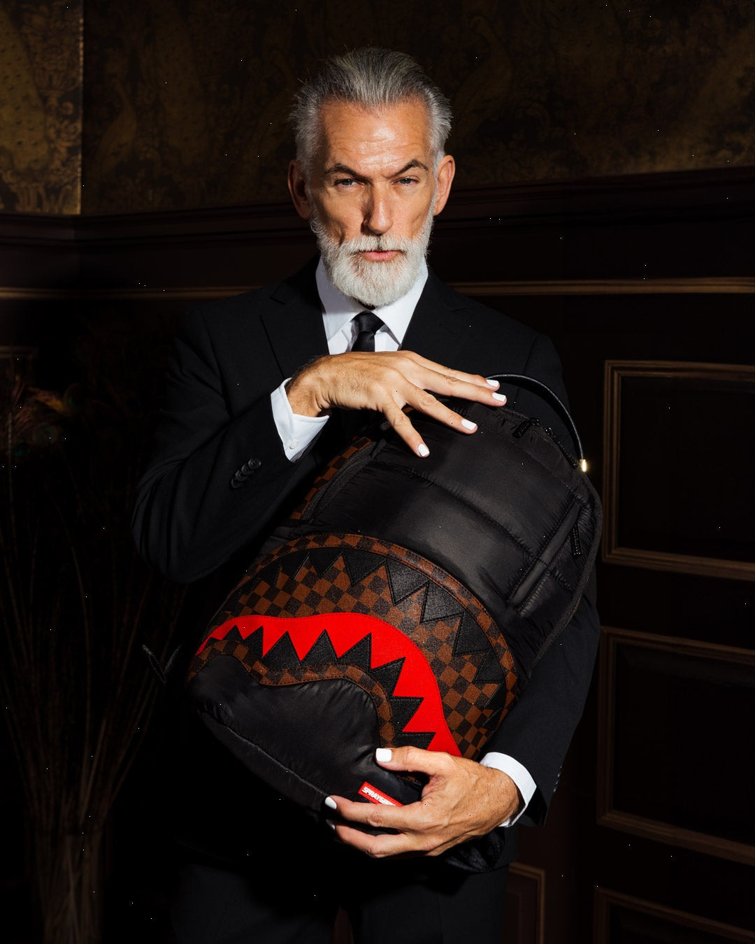 Dimensions: 18" x 6" x 11.5" ? Front zipper pocket ? Side pockets ? Zippered Stash pocket ? Separate velour sunglass compartment ? Ergonomic mesh back padding ? Adjustable Straps for custom sizing ? Gold zippers with metal hardware ? Metal "Sprayground Authentic" badge ? Slide through back sleeve connects to carry-on luggage to free your hands
