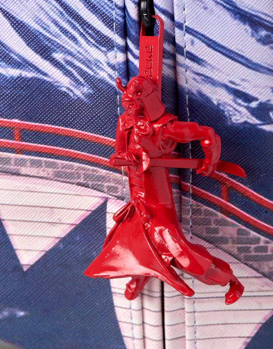 ExteriorDimensions: 18" x 6" x 11.5" ? Front zipper pocket ? Side pockets ? Zippered Stash pocket ? Separate velour sunglass compartment ? Ergonomic mesh back padding ? Adjustable Straps for custom sizing ? Dye-cast samurai zipper pulley with silver zippers and metal hardware ? Metal "Sprayground Authentic" badge ? Slide through back sleeve connects to carry-on luggage to free your hands