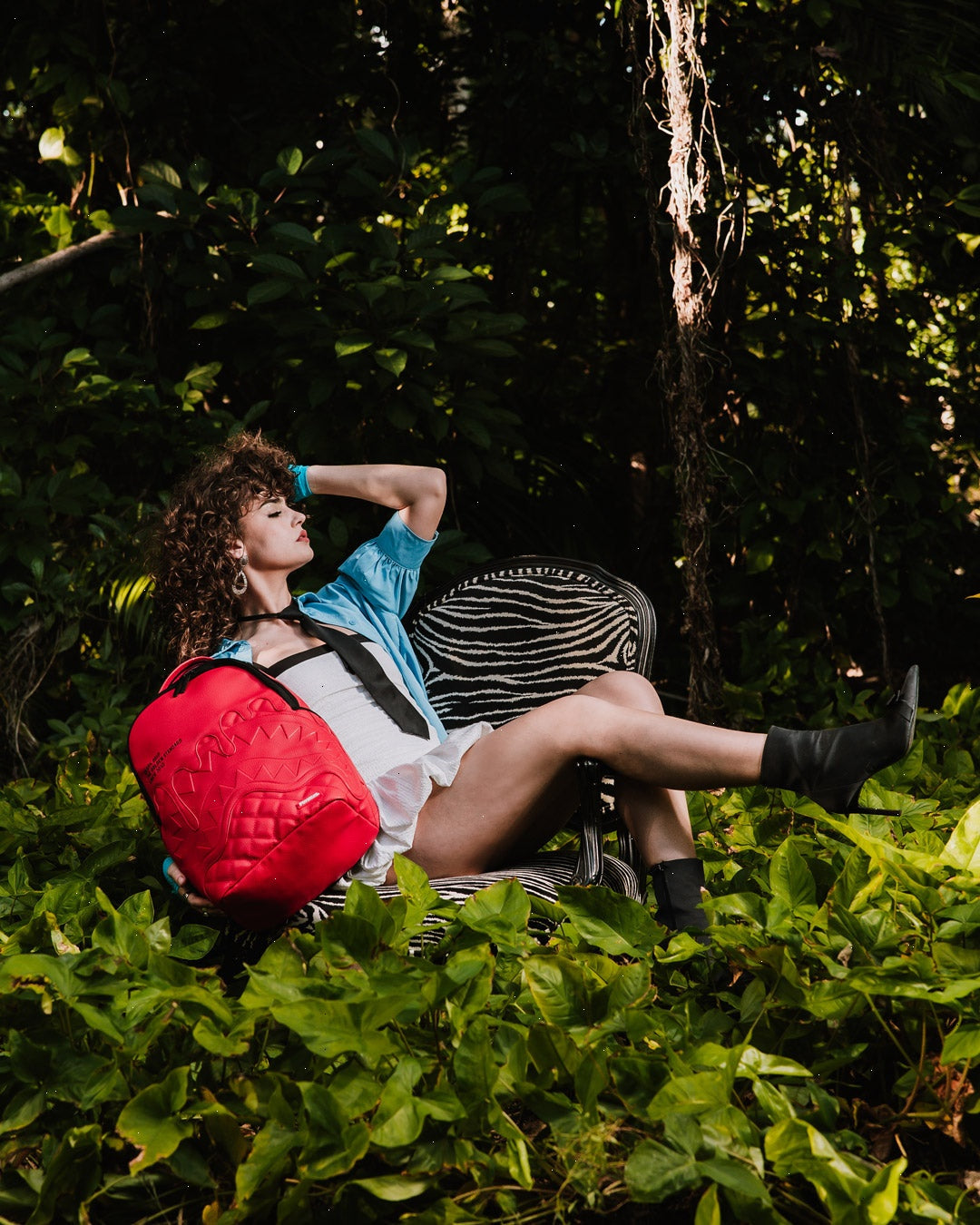 Dimensions: 18" x 6" x 11.5" ? Front zipper pocket ? Side pockets ? Zippered Stash pocket ? Separate velour sunglass compartment ? Ergonomic mesh back padding ? Adjustable Straps for custom sizing ? Gold zippers with metal hardware ? Metal "Sprayground Authentic" badge ? Slide through back sleeve connects to carry-on luggage to free your hands