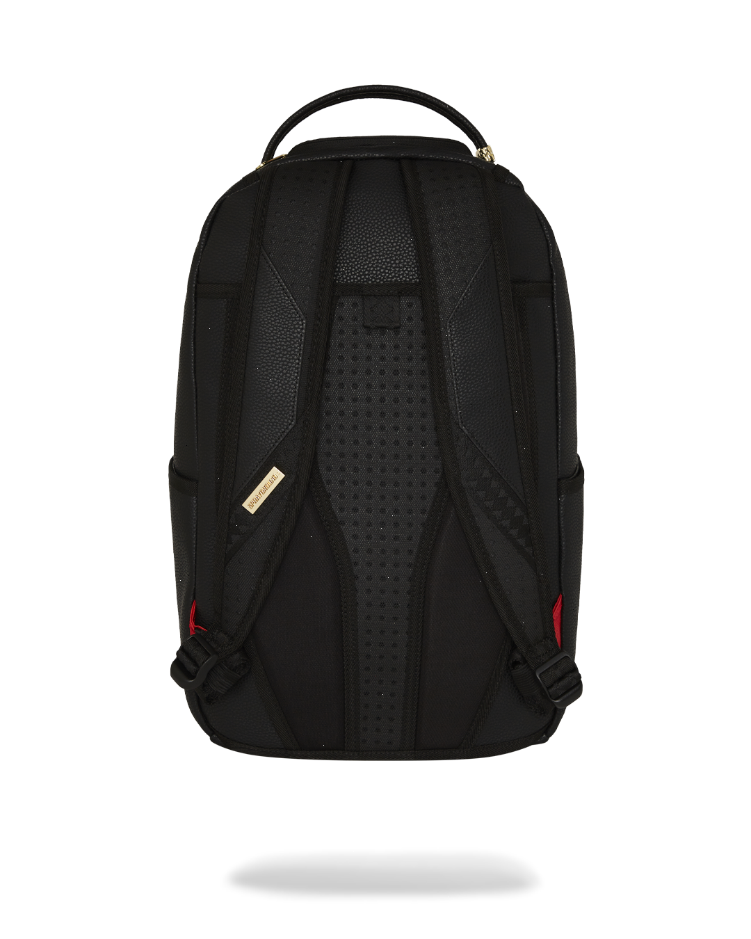 Dimensions: 18" x 6" x 11.5" ? Front zipper pocket ? Side pockets ? Zippered Stash pocket ? Separate velour sunglass compartment ? Ergonomic mesh back padding ? Adjustable Straps for custom sizing ? Gold zippers with metal hardware ? Metal "Sprayground Authentic" badge ? Slide through back sleeve connects to carry-on luggage to free your hands