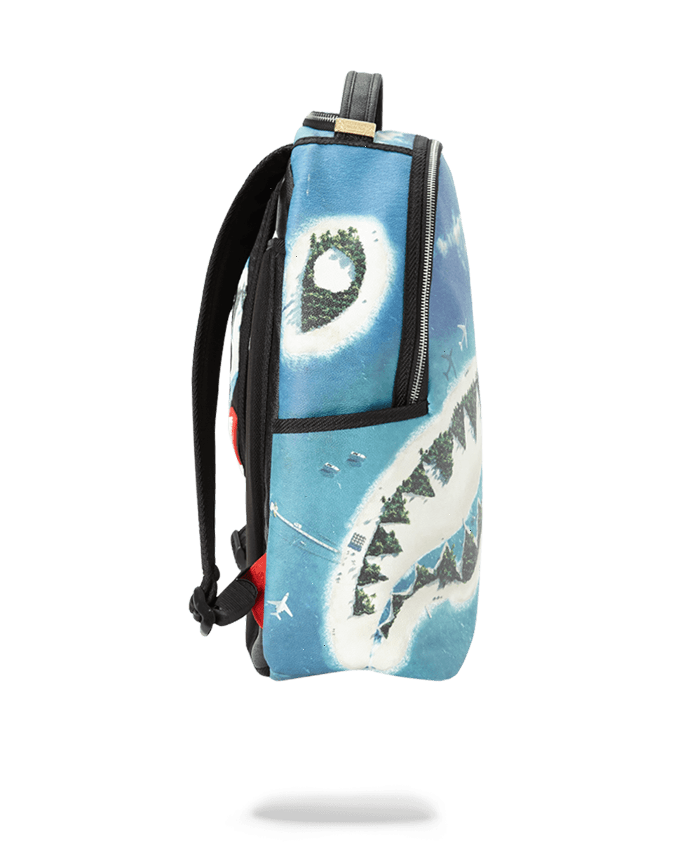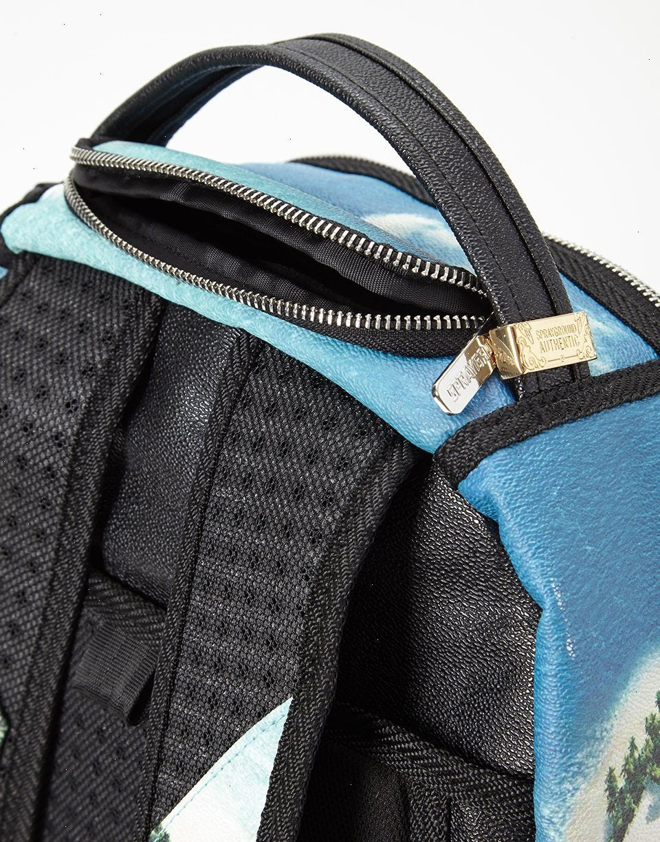 ExteriorDimensions: 18" x 6" x 11.5" ? Front zipper pocket ? Side pockets ? Zippered Stash pocket ? Ergonomic mesh back padding ? Adjustable Straps for custom sizing ? Nylon Zippers with Metal Hardware ? Metal "Sprayground Authentic" badge ? Slide through back sleeve connects to Carry on luggage to free your hands ? Bag of Sprayground Money