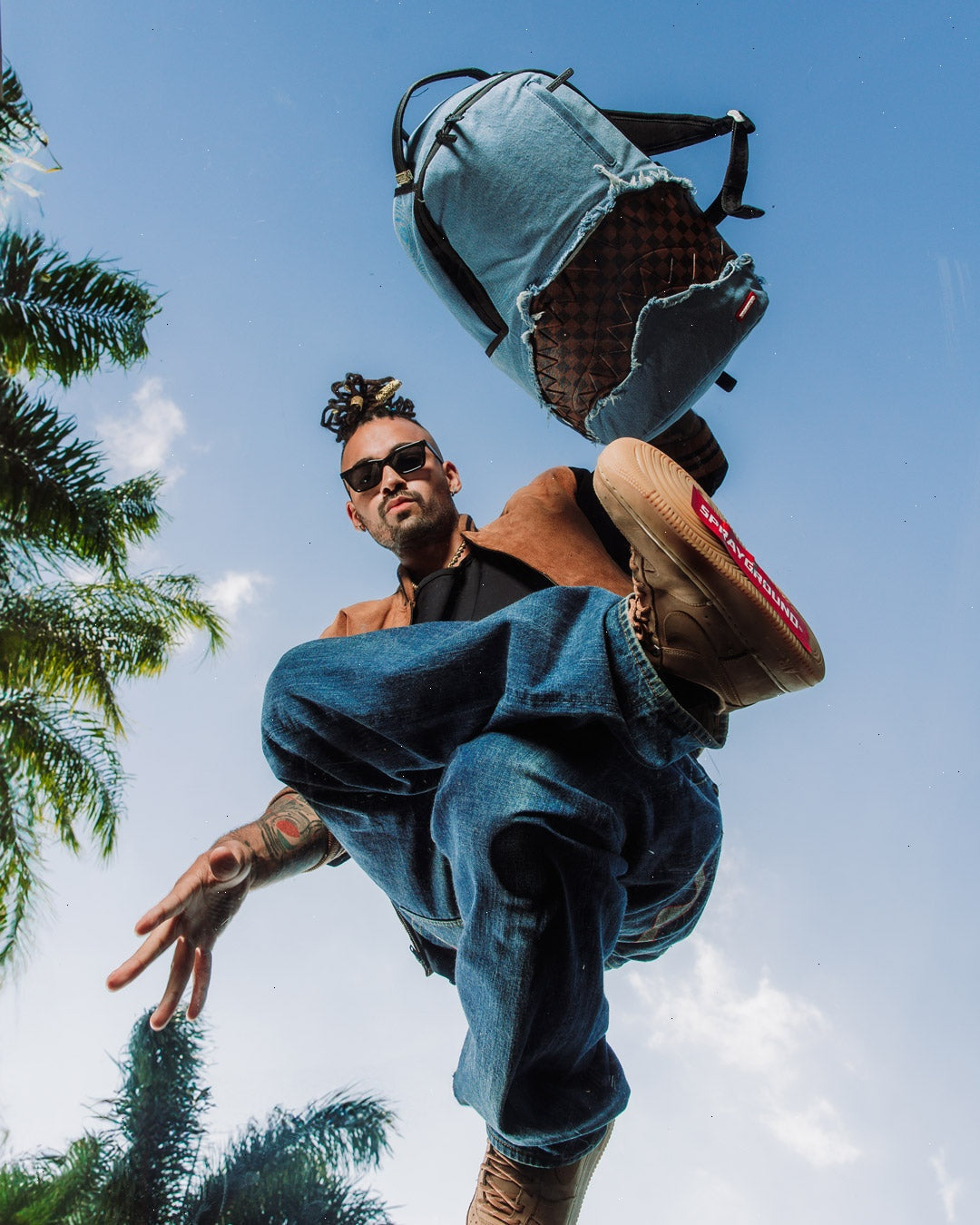 Dimensions: 18" x 6" x 11.5" ? Front zipper pocket ? Side pockets ? Zippered Stash pocket ? Separate velour sunglass compartment ? Ergonomic mesh back padding ? Adjustable Straps for custom sizing ? Gold zippers with metal hardware ? Metal "Sprayground Authentic" badge ? Slide through back sleeve connects to carry-on luggage to free your hands