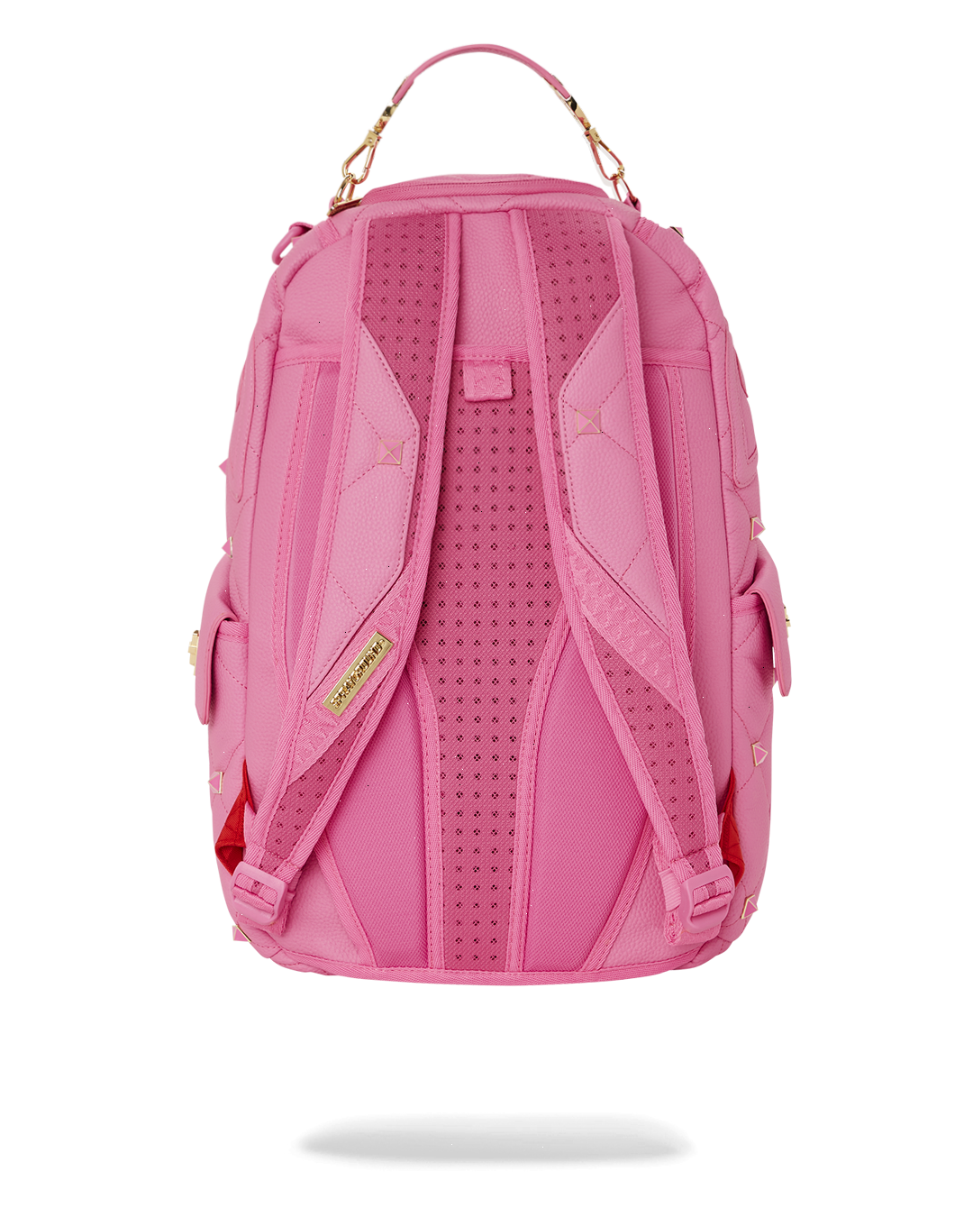 Quilted and embellished pink/ gold enamel studs & custom Sprayground logo hardware