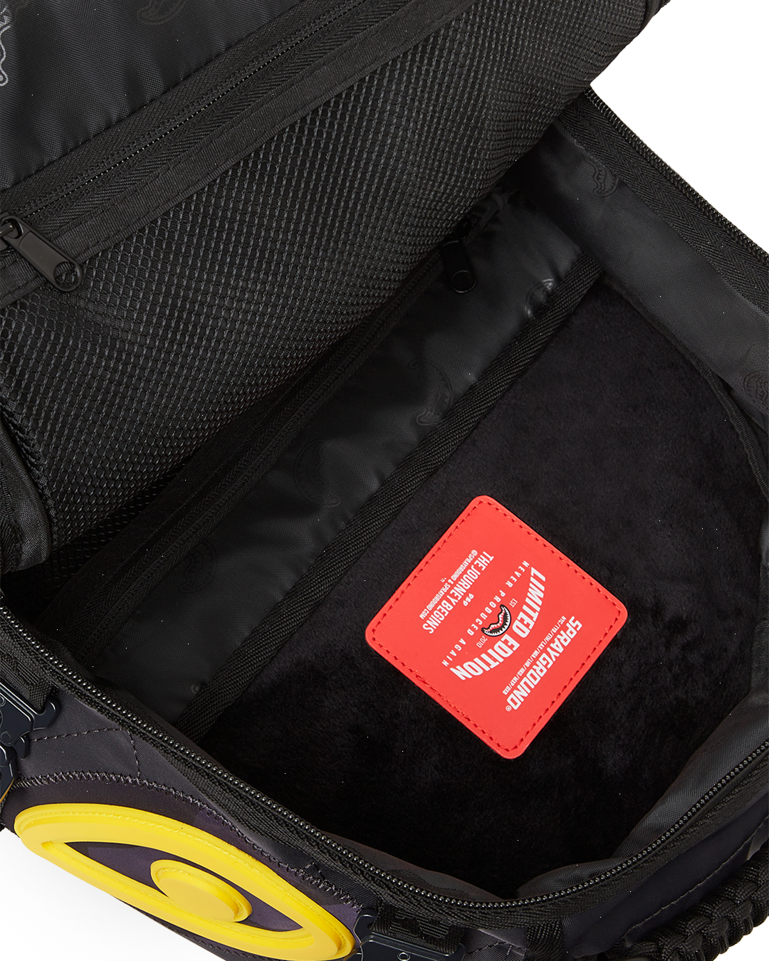 Fabric made from polyester satin weave with monochromatic camo details and contrast yellow trims