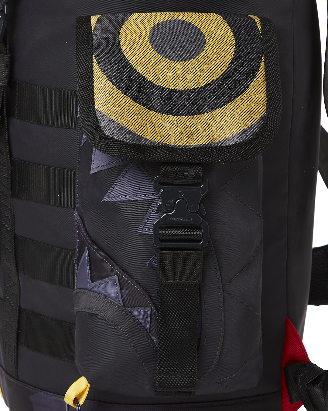 Dimensions: 18" x 6" x 11.5" ? Top Flap opening w/ adjustable metal enamel buckles and drawstring closure?