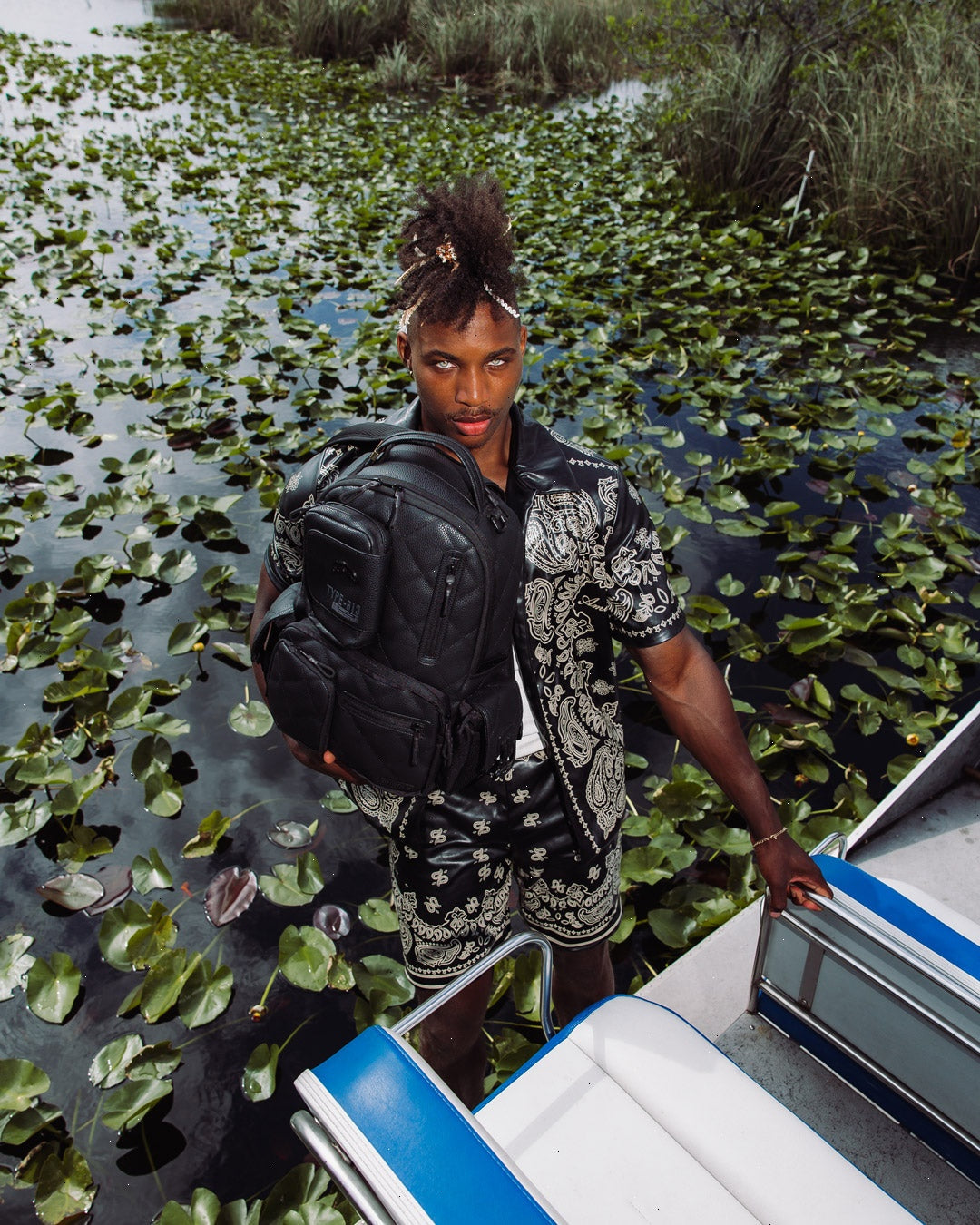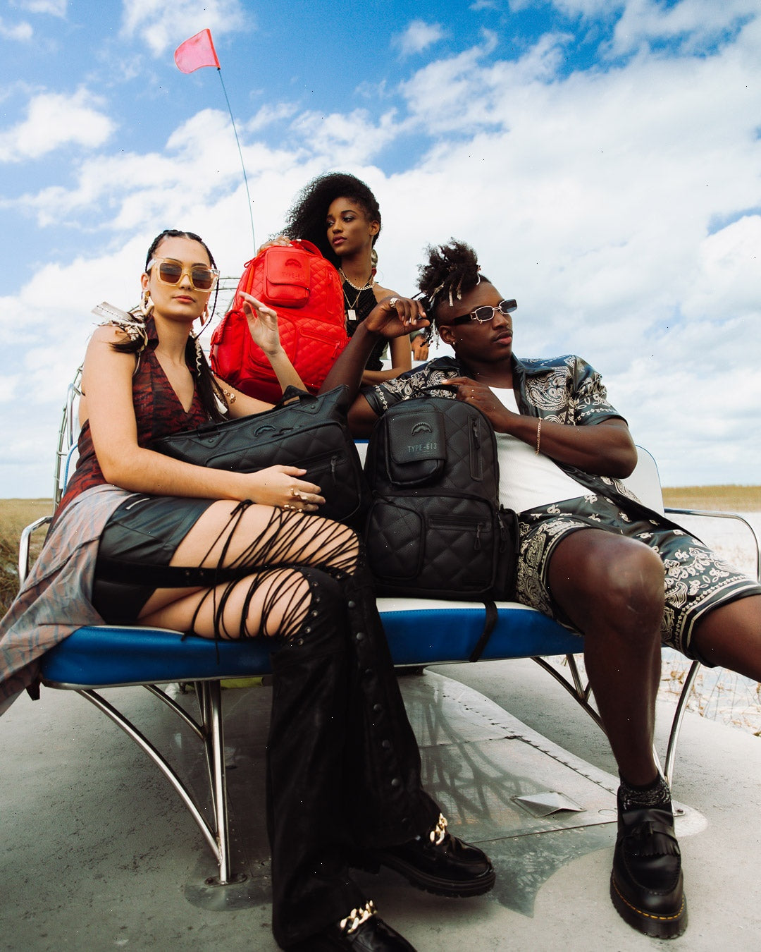 Dimensions: 18" x 6" x 11.5" ? Front zipper pocket ? Side pockets ? Zippered Stash pocket ? Separate velour sunglass compartment ? Ergonomic mesh back padding ? Adjustable Straps for custom sizing ? Gold zippers with metal hardware ? Metal "Sprayground Authentic" badge ? Slide through back sleeve connects to carry-on luggage to free your hands