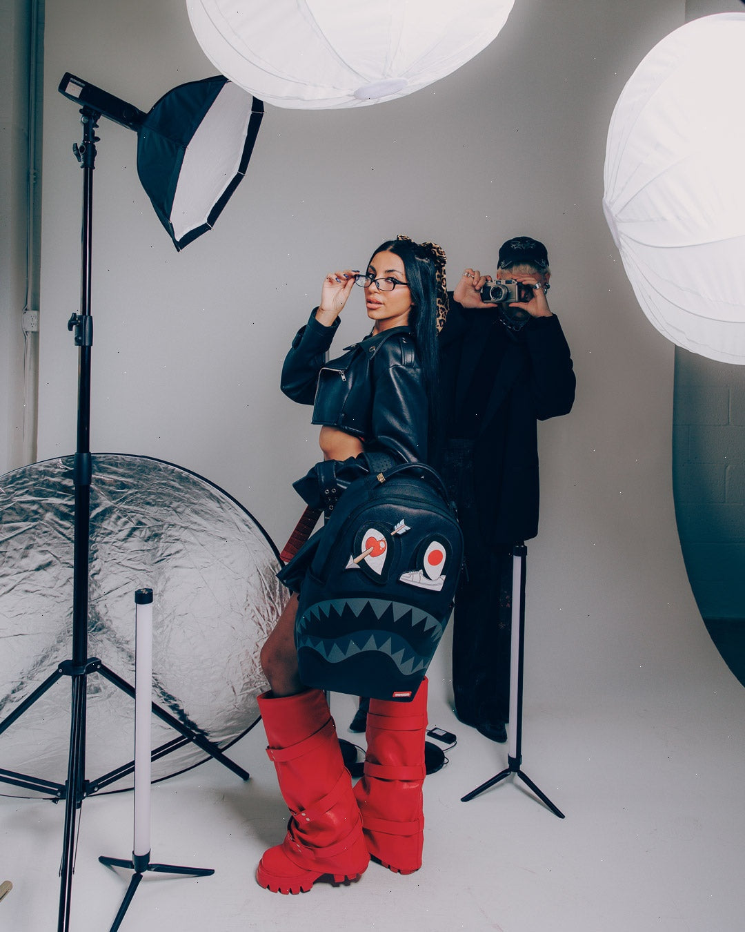 Dimensions: 18" x 6" x 11.5" ? Front zipper pocket ? Side pockets ? Zippered Stash pocket ? Separate velour sunglass compartment ? Ergonomic mesh back padding ? Adjustable Straps for custom sizing ? Gold zippers with metal hardware ? Metal "Sprayground Authentic" badge ? Slide through back sleeve connects to carry-on luggage to free your hands