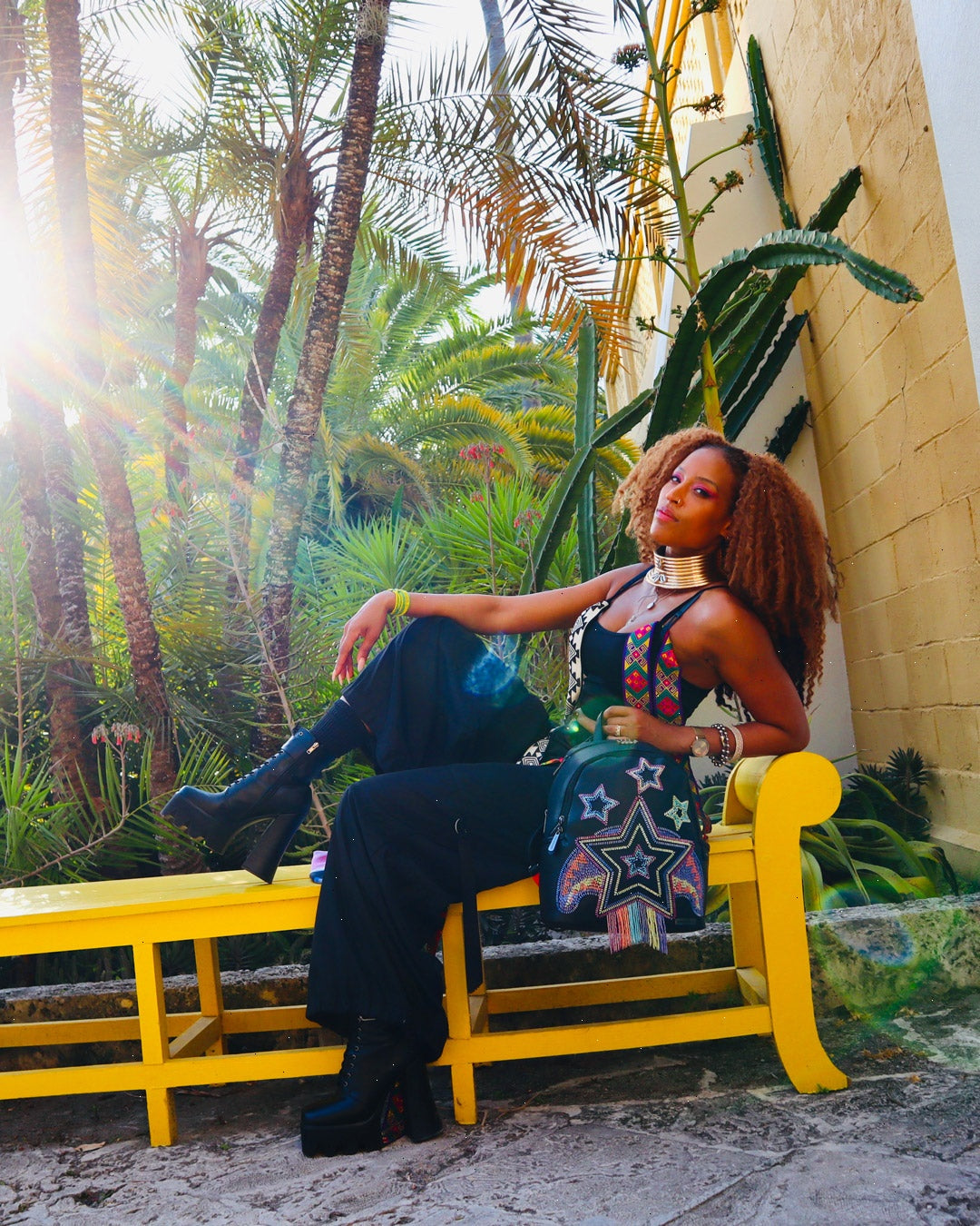 The coveted collection features the standout design; an eye-catching star print that is crafted from beads and is embedded perfectly on each of the items in this capsule . The Ai collection has been known for, vibrant purples, reds and yellows that speak to the colorful inspirations of Afro-futuristic art and culture. The exquisitely crafted beaded design speaks to this as well and is beautifully cascading off of Sprayground's iconic collectible art piece - the shark mouth print on both backpacks.