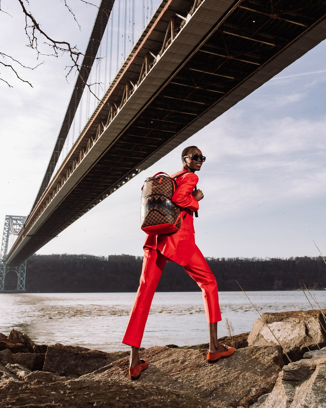Dimensions: 18" x 6" x 11.5" ? Front zipper pocket ? Side pockets ? Zippered Stash pocket ? Separate velour sunglass compartment ? Ergonomic mesh back padding ? Adjustable Straps for custom sizing ? Gold zippers with metal hardware ? Metal "Sprayground Authentic" badge ? Slide through back sleeve connects to carry-on luggage to free your hands