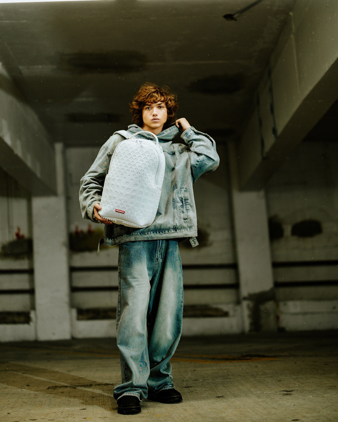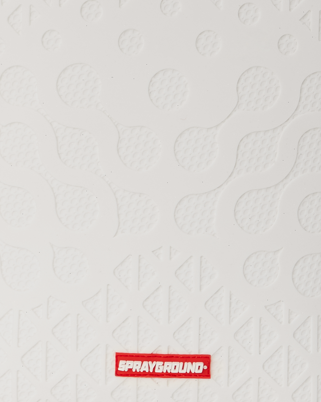 Dimensions: 18" x 6" x 11.5" ? Front zipper pocket ? Side pockets ? Zippered Stash pocket ? Separate velour sunglass compartment ? Ergonomic mesh back padding ? Adjustable Straps for custom sizing ? Gold zippers with metal hardware ? Metal "Sprayground Authentic" badge ? Slide through back sleeve connects to carry-on luggage to free your hands