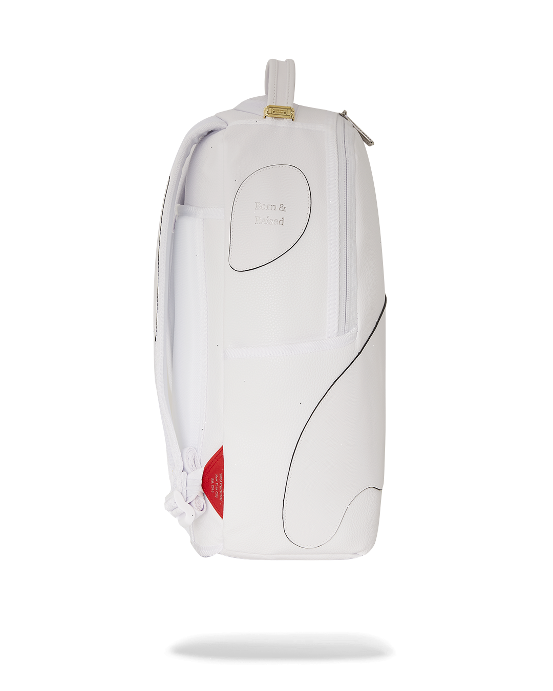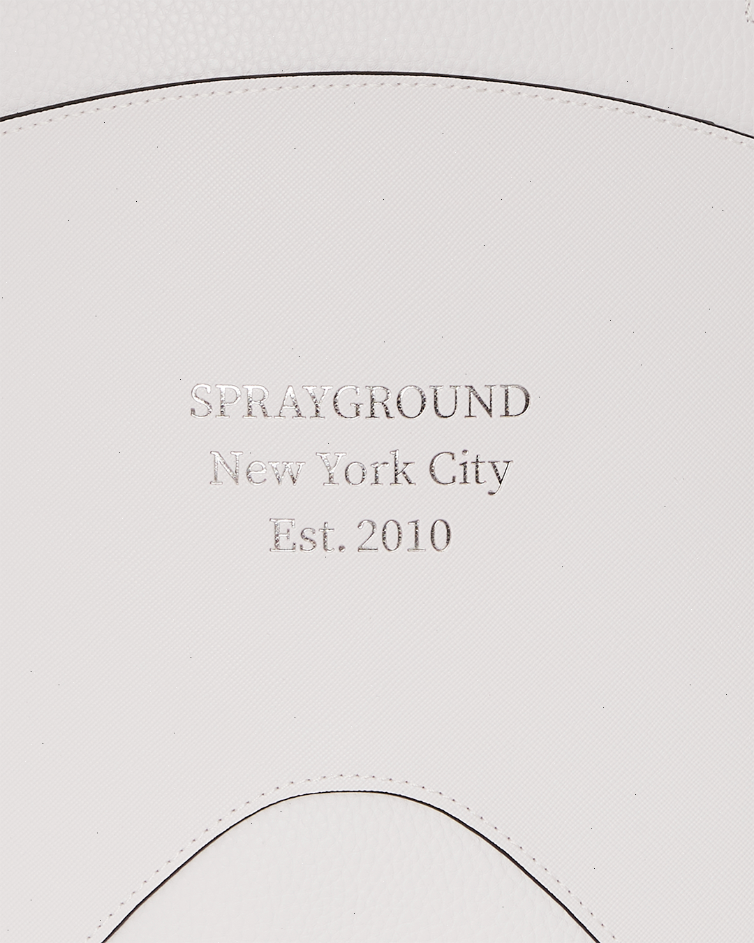Dimensions: 18" x 6" x 11.5" ? Front zipper pocket ? Side pockets ? Zippered Stash pocket ? Separate velour sunglass compartment ? Ergonomic mesh back padding ? Adjustable Straps for custom sizing ? Gold zippers with metal hardware ? Metal "Sprayground Authentic" badge ? Slide through back sleeve connects to carry-on luggage to free your hands