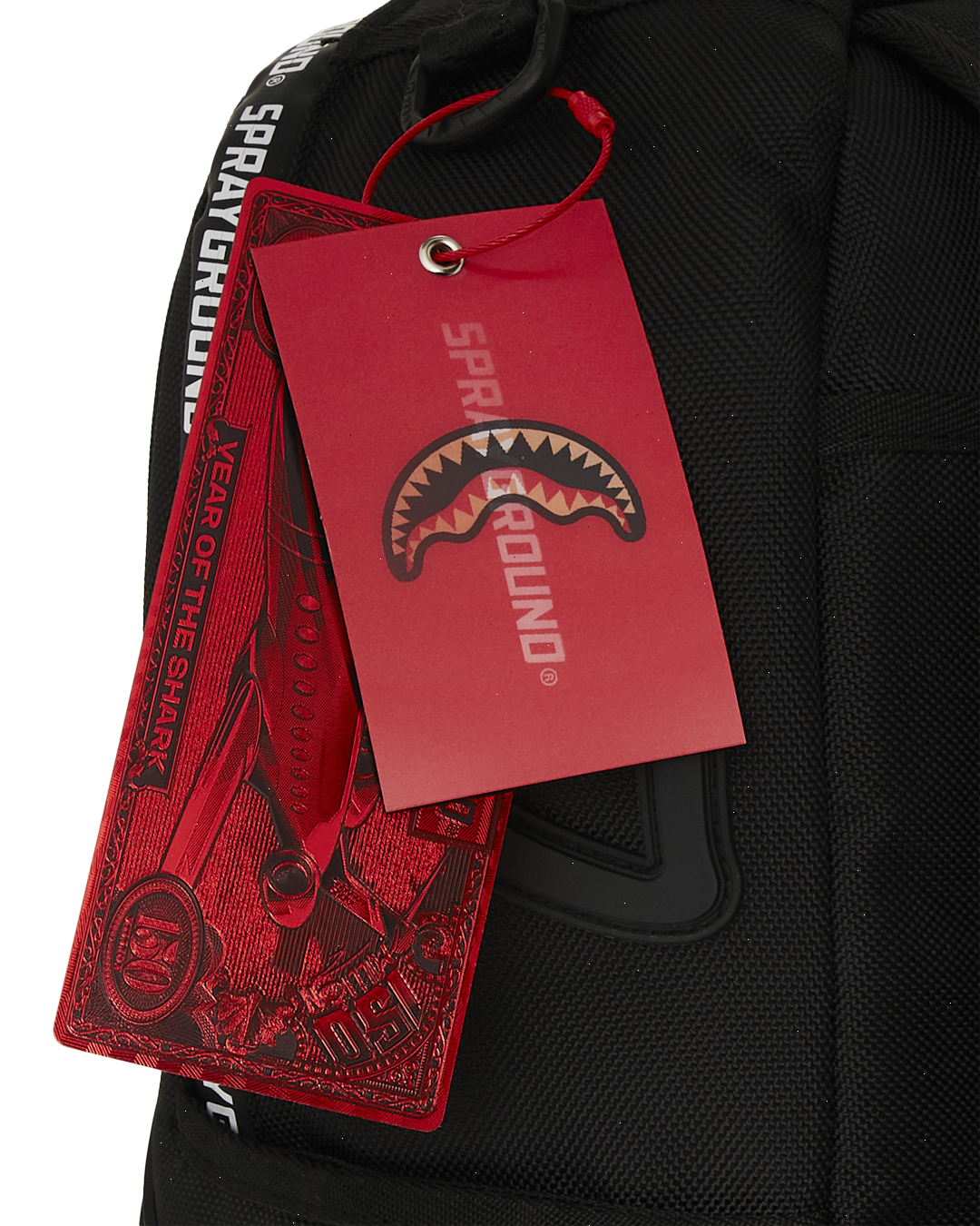 Dimensions: 18" x 6" x 11.5" ? Front zipper pocket ? Side pockets ? Zippered Stash pocket ? Separate velour sunglass compartment ? Ergonomic mesh back padding ? Adjustable Straps for custom sizing ? Gold zippers with metal hardware ? Metal "Sprayground Authentic" badge ? Slide through back sleeve connects to carry-on luggage to free your hands