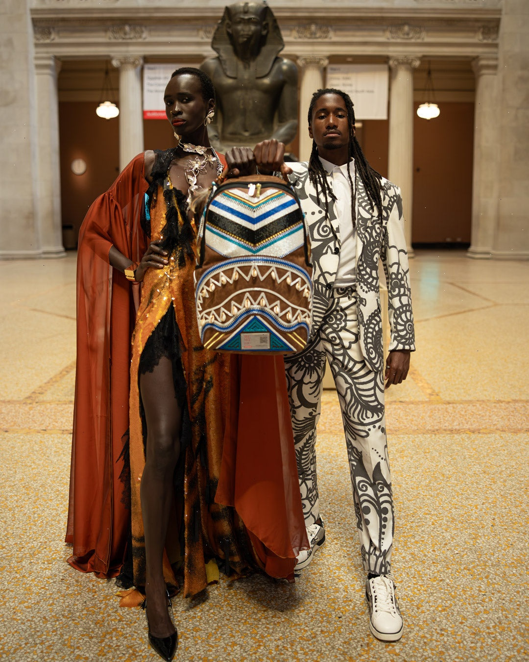 A beaded headdress, or mpaan, crafted in the Kuba kingdom (present-day Democratic Republic of Congo) during the 19th每20th century, informs the detailing on this artful backpack with Sprayground*s shark mouth integrated into the design. Such a headdress, worn during funerals and ceremonial occasions, would have been a visible indication of one*s rank within the elaborate Kuba social system. The mpaan was specifically reserved for senior female titleholders. This backpack has been delicately crafted with beads and shells in honor of the original.?