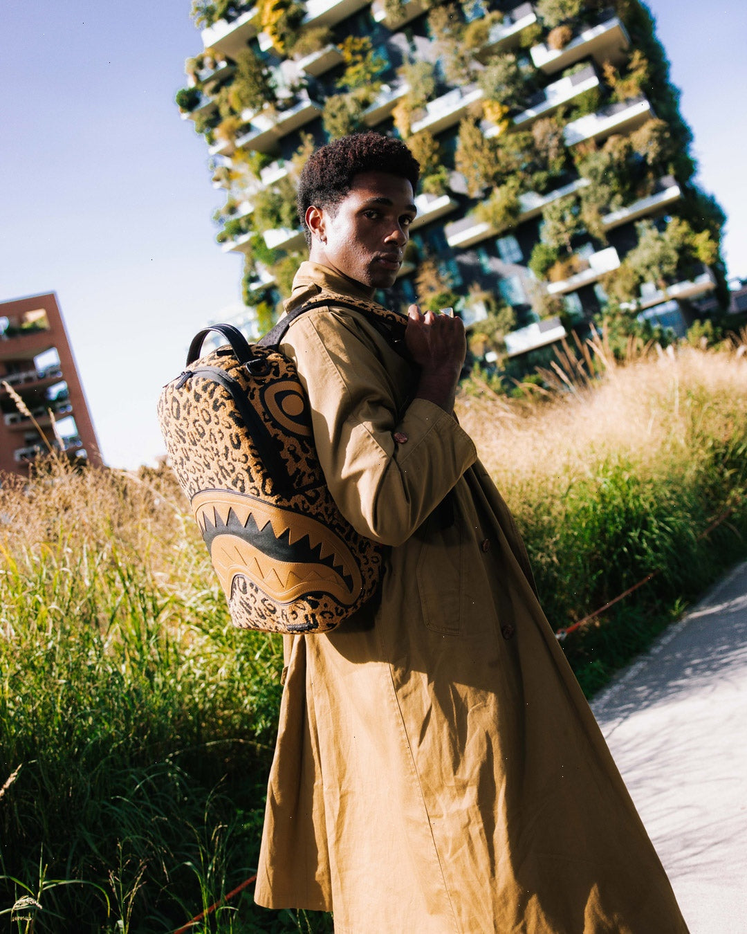 Dimensions: 18" x 6" x 11.5" ? Front zipper pocket ? Side pockets ? Zippered Stash pocket ? Separate velour sunglass compartment ? Ergonomic mesh back padding ? Adjustable Straps for custom sizing ? Gold zippers with metal hardware ? Metal "Sprayground Authentic" badge ? Slide through back sleeve connects to carry-on luggage to free your hands
